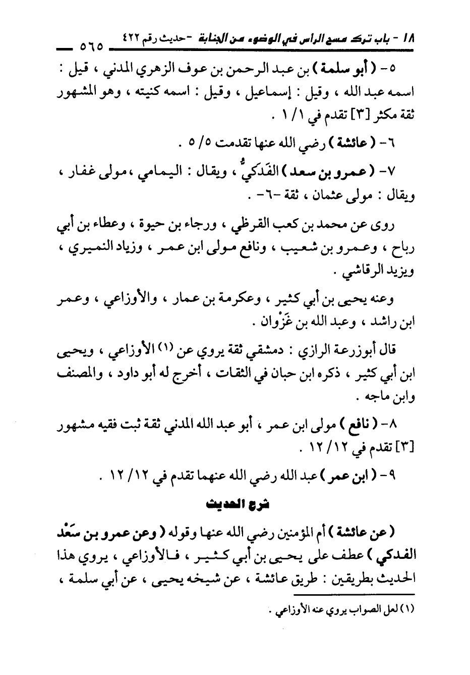 5 - (أبو سلمة) بن عبد الرحمن بن عوف الزهري المدني، قيل: اسمه عبد الله، وقيل: إسماعيل، وقيل: اسمه كنيته، وهو المشهور ثقة مكثر [3] تقدم في 1/ 1.