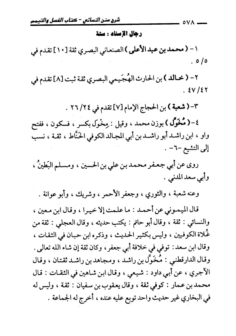 4 - (مُخَوَّل) بوزن محمَّد، وقيل: مِخْوَل بكسر، فسكون، ففتح واو، ابن راشد أبو راشد بن أبي المجالد الكوفي الحَنَّاط، ثقة، نسب إلى التشيع -6 - .