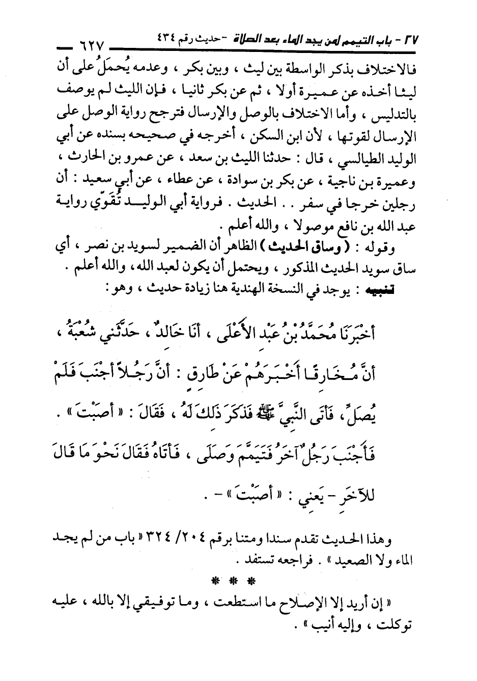 تنبيه: يوجد في النسخة الهندية هنا زيادة حديث، وهو: