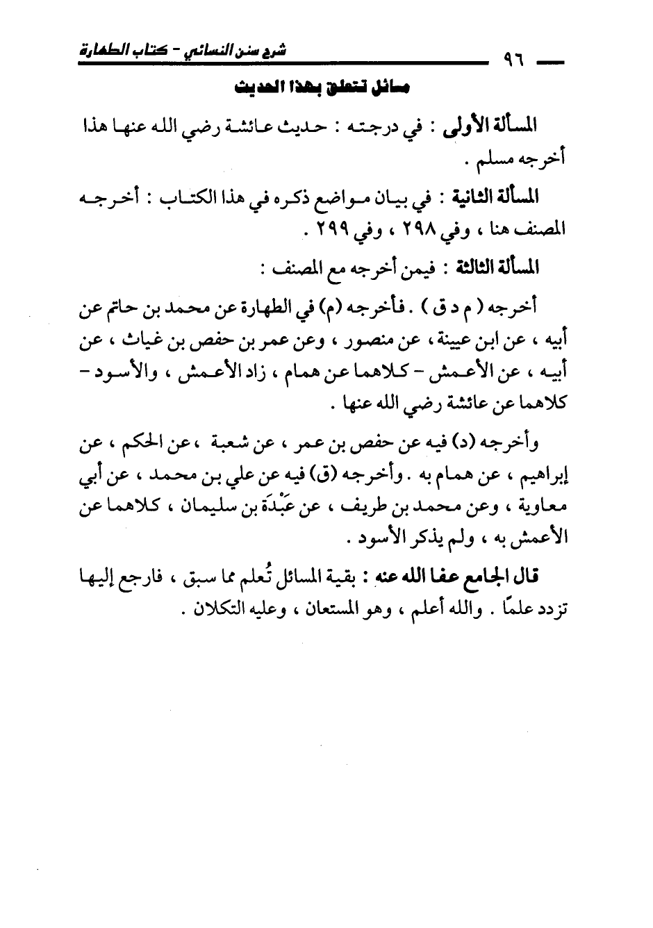 قال الجامع عفا الله عنه: بقية المسائل تُعلم مما سبق، فارجع إليها تزدد علمًا. والله أعلم، وهو المستعان، وعليه التكلان.