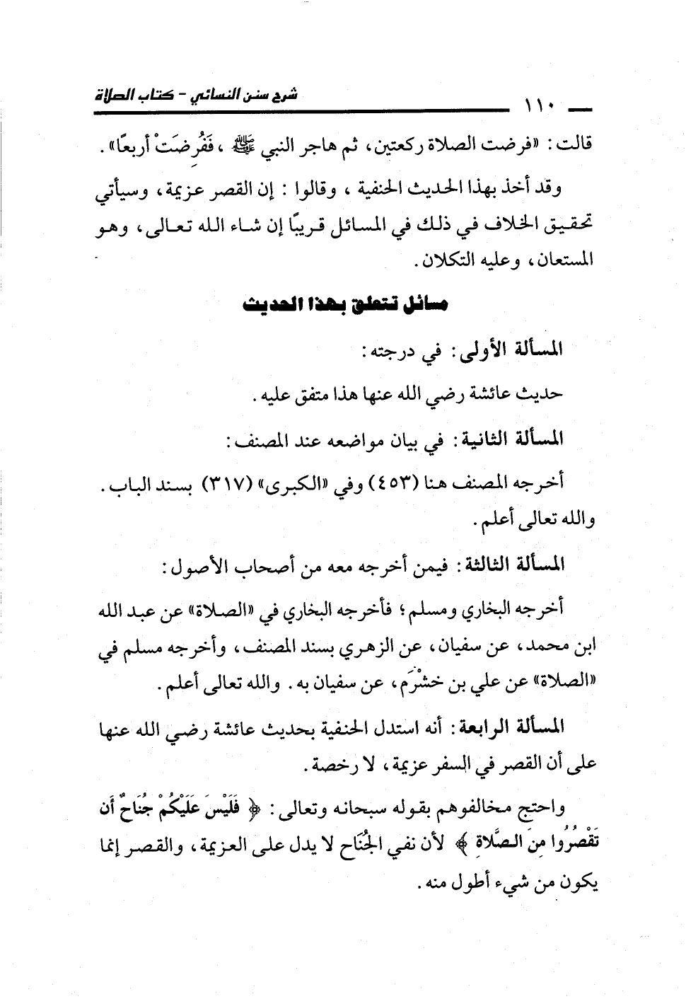 وقد أخذ بهذا الحديث الحنفية، وقالوا: إن القصر عزيمة، وسيأتي تحقيق الخلاف في ذلك في المسائل قريبًا إن شاء الله تعالى، وهو المستعان، وعليه التكلان.