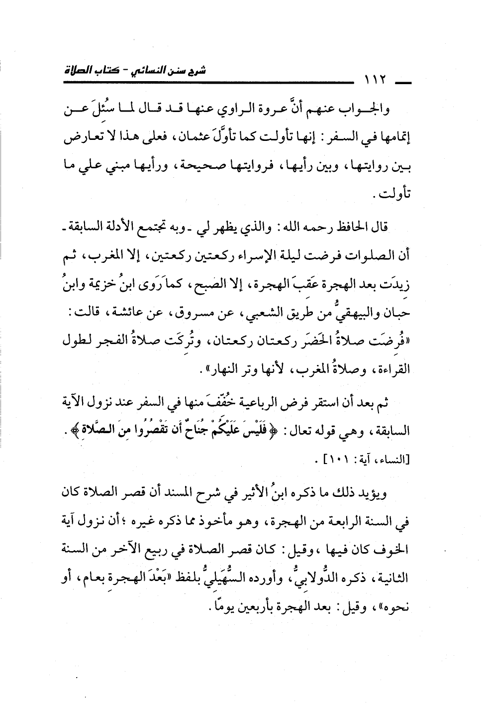 ويؤيد ذلك ما ذكره ابنُ الأثير في شرح المسند أن قصر الصلاة كان في السنة الرابعة من الهجرة، وهو مأخوذ مما ذكره غيره؛ أن نزول آية الخوف كان فيها، وقيل: كان قصر الصلاة في ربيع الآخر من السنة الثانية، ذكره الدُّولابِيُّ، وأورده السُّهَيلِيُّ بلفظ "بَعْدَ الهجرةِ بعام، أو نحوه"، وقيل: بعد الهجرة بأربعين يومًا.