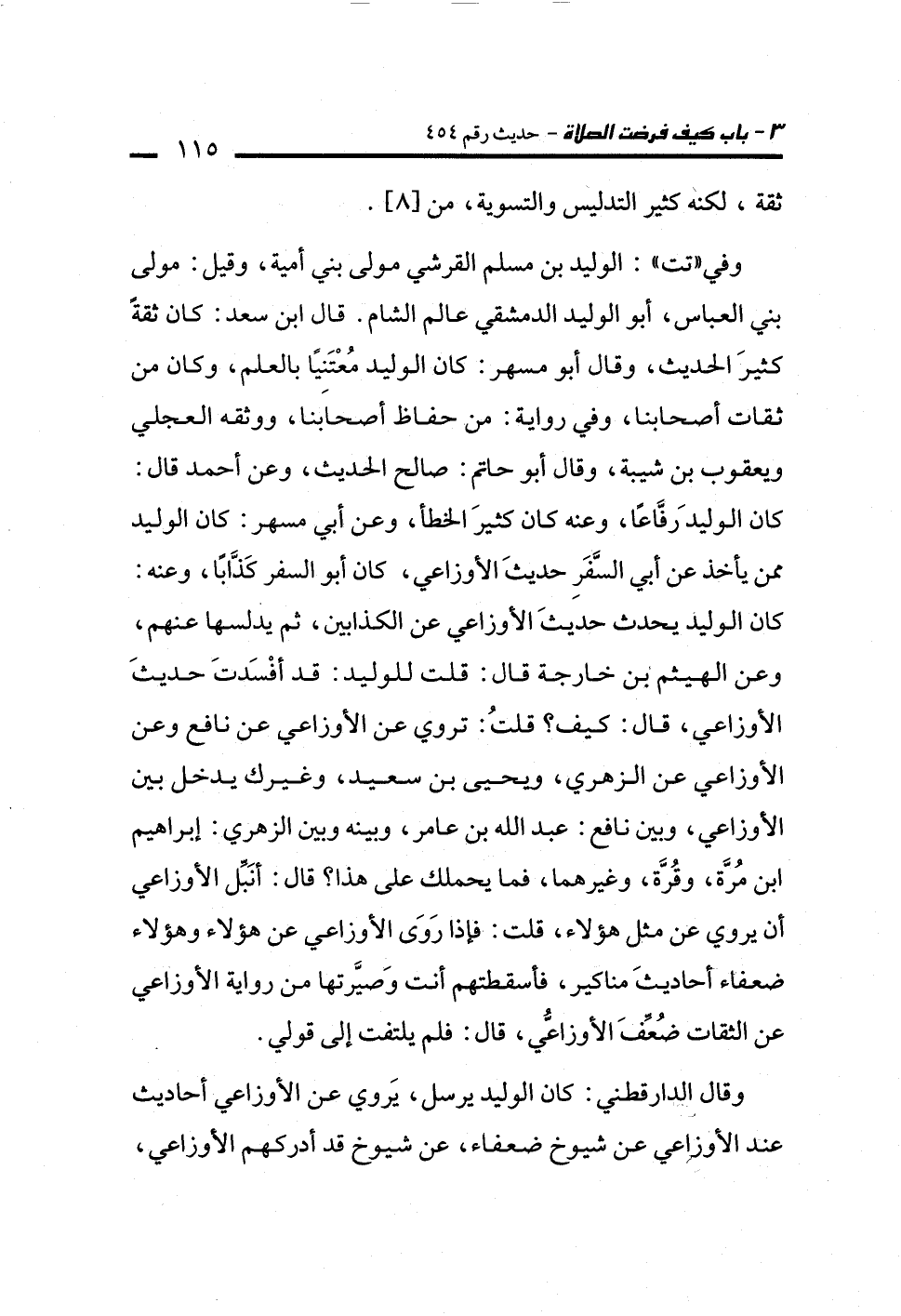 وقال الدارقطني: كان الوليد يرسل، يَروي عن الأوزاعي أحاديث عند الأوزاعي عن شيوخ ضعفاء، عن شيوخ قد أدركهم الأوزاعي،