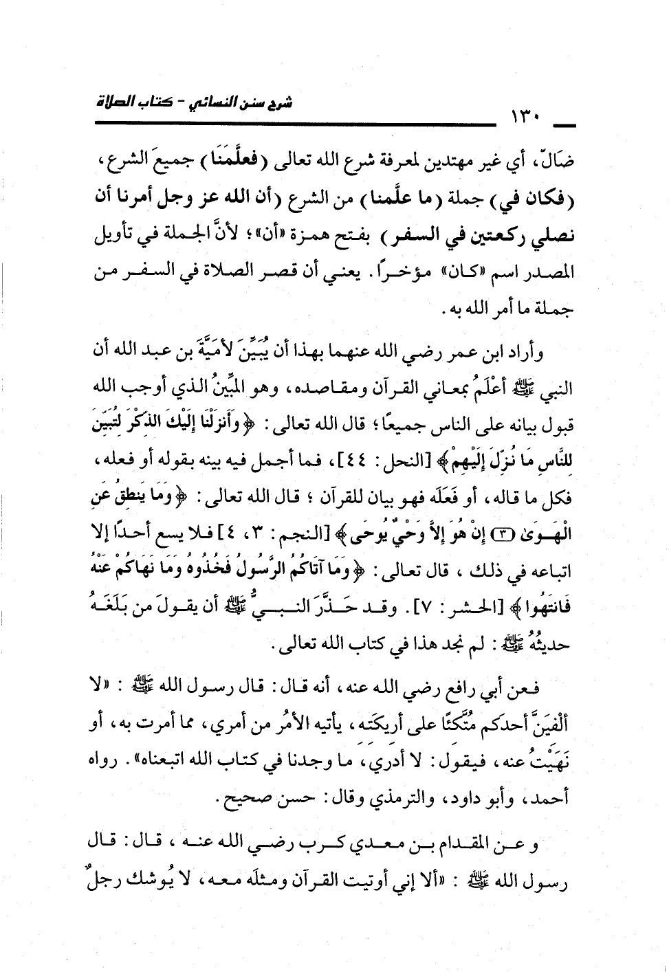 اتباعه في ذلك، قال تعالى: {وَمَا آتَاكُمُ الرَّسُولُ فَخُذُوهُ وَمَا نَهَاكُمْ عَنْهُ فَانْتَهُوا} [الحشر: 7]. وقد حَذَّرَ النبيُّ - صلى الله عليه وسلم - أن يقولَ من بَلَغَهُ حديثُهُ - صلى الله عليه وسلم -: لم نجد هذا في كتاب الله تعالى.