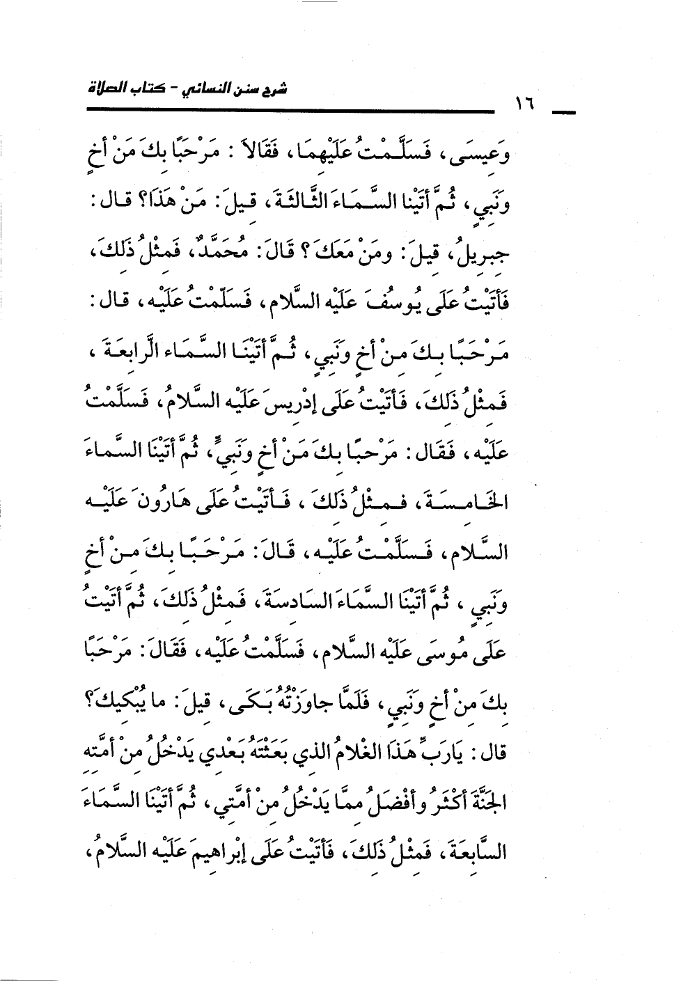 وَعِيسَى، فَسَلَّمْتُ عَلَيْهِمَا، فَقَالاَ: مَرْحَبًا بِكَ مِنْ أَخٍ وَنَبِيٍّ، ثُمَّ أَتَيْنَا السَّمَاءَ الثَّالِثَةَ، قِيلَ: مَنْ هَذَا؟ قَالَ: جِبْرِيلُ، قِيلَ: وَمَنْ مَعَكَ؟ قَالَ: مُحَمَّدٌ، فَمِثْلُ ذَلِكَ، فَأَتَيْتُ عَلَى يُوسُفَ عَلَيْهِ السَّلاَمُ، فَسَلَّمْتُ عَلَيْهِ، قَالَ: مَرْحَبًا بِكَ مِنْ أَخٍ وَنَبِيٍّ، ثُمَّ أَتَيْنَا السَّمَاءَ الرَّابِعَةَ، فَمِثْلُ ذَلِكَ، فَأَتَيْتُ عَلَى إِدْرِيسَ عَلَيْهِ السَّلاَمُ، فَسَلَّمْتُ عَلَيْهِ، فَقَالَ: مَرْحَبًا بِكَ مِنْ أَخٍ وَنَبِيٍّ، ثُمَّ أَتَيْنَا السَّمَاءَ الْخَامِسَةَ، فَمِثْلُ ذَلِكَ، فَأَتَيْتُ عَلَى هَارُونَ عَلَيْهِ السَّلاَمُ، فَسَلَّمْتُ عَلَيْهِ، قَالَ: مَرْحَبًا بِكَ مِنْ أَخٍ وَنَبِيٍّ، ثُمَّ أَتَيْنَا السَّمَاءَ السَّادِسَةَ، فَمِثْلُ ذَلِكَ، ثُمَّ أَتَيْتُ عَلَى مُوسَى عَلَيْهِ السَّلاَمُ، فَسَلَّمْتُ عَلَيْهِ، فَقَالَ: مَرْحَبًا بِكَ مِنْ أَخٍ وَنَبِيٍّ، فَلَمَّا جَاوَزْتُهُ بَكَى، قِيلَ: مَا يُبْكِيكَ؟ قَالَ: يَا رَبِّ هَذَا الْغُلاَمُ الَّذِي بَعَثْتَهُ بَعْدِي يَدْخُلُ مِنْ أُمَّتِهِ الْجَنَّةَ أَكْثَرُ وَأَفْضَلُ مِمَّا يَدْخُلُ مِنْ أُمَّتِي، ثُمَّ أَتَيْنَا السَّمَاءَ السَّابِعَةَ، فَمِثْلُ ذَلِكَ، فَأَتَيْتُ عَلَى إِبْرَاهِيمَ عَلَيْهِ السَّلاَمُ،