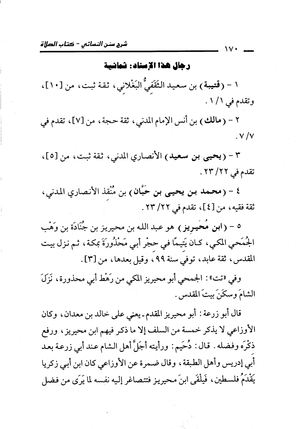 5 - (ابن مُحَيرِيز) هو عبد الله بن محيريز بن جُنَادَة بن وَهْب الجُمَحي المكي، كان يَتِيمًا في حجْر أبي مَحْذُورَةَ بمكة، ثم نزل بيت المقدس، ثقة عابد، توفي سنة 99، وقيل بعدها، من [3].