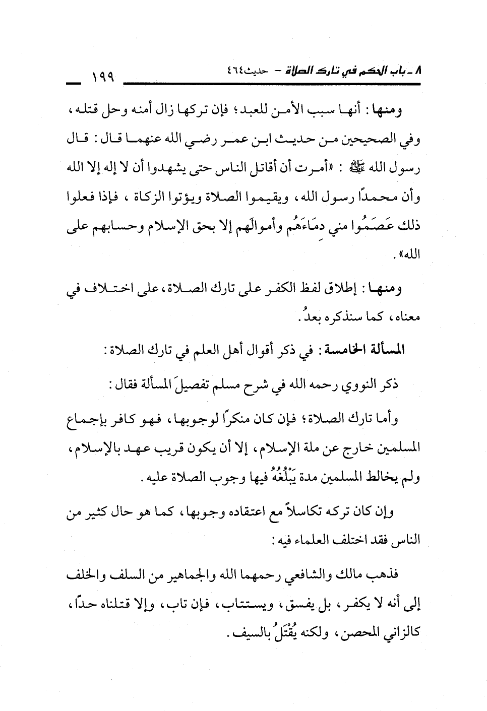 المسألة الخماسة: في ذكر أقوال أهل العلم في تارك الصلاة: