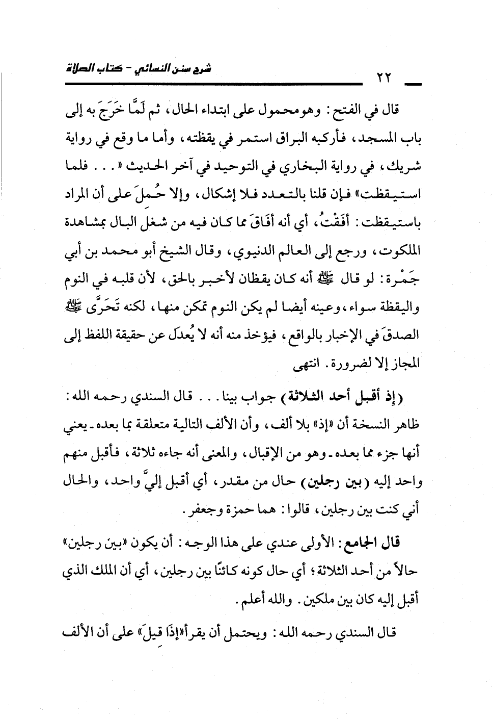 قال في الفتح: وهو محمول على ابتداء الحالَ، ثم لَمَّا خَرَجَ به إلى باب المسجد، فأركبه البراق استمر في يقظته، وأما ما وقع في رواية شريك، في رواية البخاري في التوحيد في آخر الحديث " ... فلما استيقظت" فإن قلنا بالتعدد فلا إشكال، وإلا حُمِلَ على أن المراد باستيقظت: أفَقْتُ، أي أنه أفَاقَ مما كان فيه من شغل البال بمشاهدة الملكوت، ورجع إلى العالم الدنيوي، وقال الشيخ أبو محمد بن أبي جَمْرة: لو قال - صلى الله عليه وسلم - أنه كان يقظان لأخبر بالحق، لأن قلبه في النوم واليقظة سواء، وعينه أيضا لم يكن النوم تمكن منها، لكنه تَحَرَّى - صلى الله عليه وسلم - الصدقَ في الإخبار بالواقع، فيؤخذ منه أنه لا يُعدَل عن حقيقة اللفظ إلى المجاز إلا لضرورة. انتهى