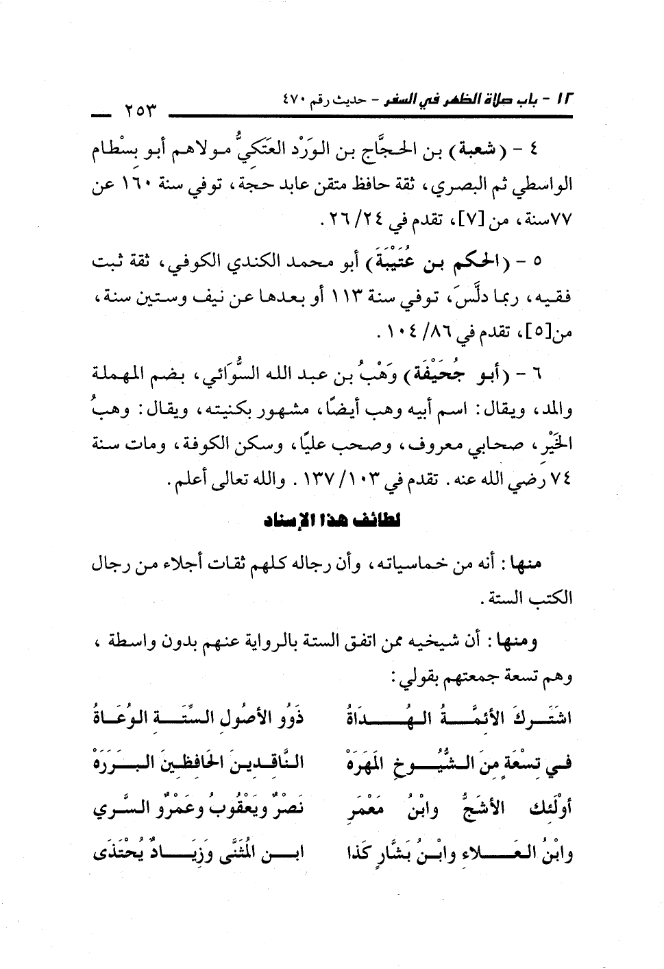اشَتَركَ الأئِمَّةُ الهُدَاةُ ... ذَوُو الأصُولِ السِّتَةِ الوُعَاةُ