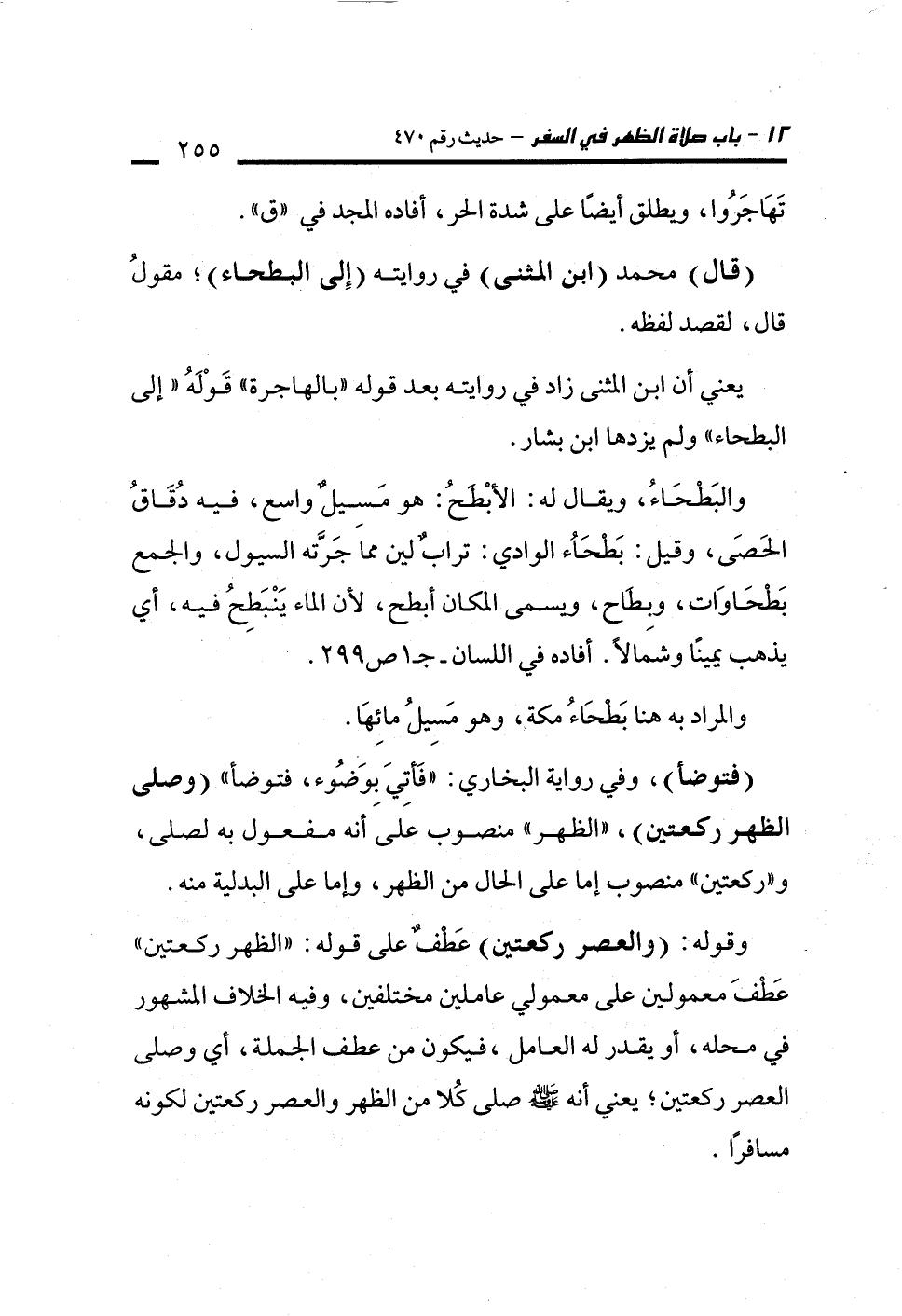 (قال) محمد (ابن المثنى) في روايته (إِلى البطحاء)؛ مقولُ قال، لقصد لفظه.