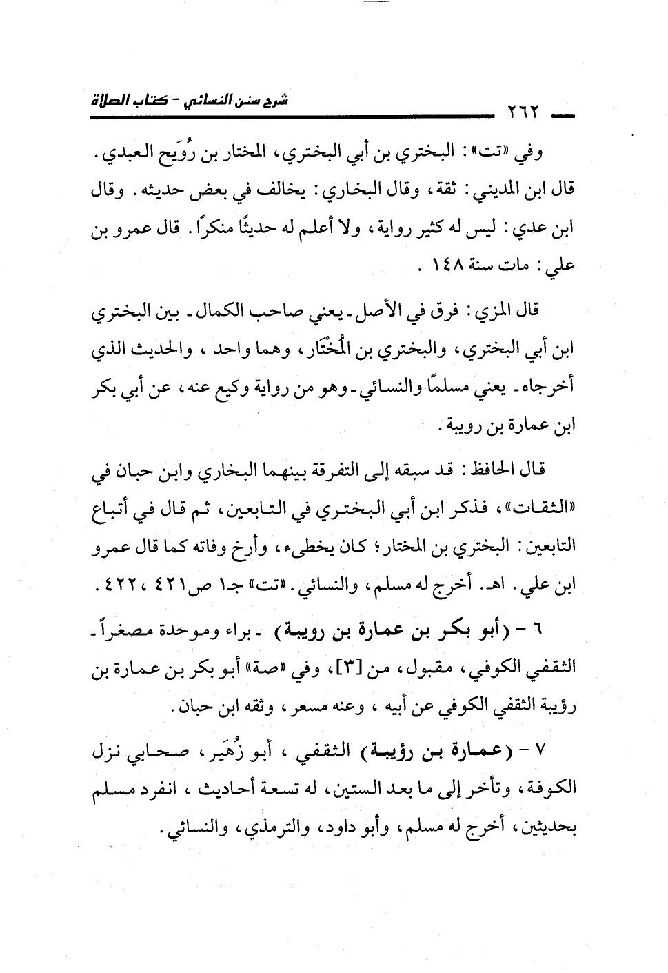 7 - (عمارة بن رؤيبة) الثقفي، أبو زُهَير، صحابي نزل الكوفة، وتأخر إلى ما بعد الستين، له تسعة أحاديث، انفرد مسلم بحديثين، أخرج له مسلم، وأبو داود، والترمذي، والنسائي.