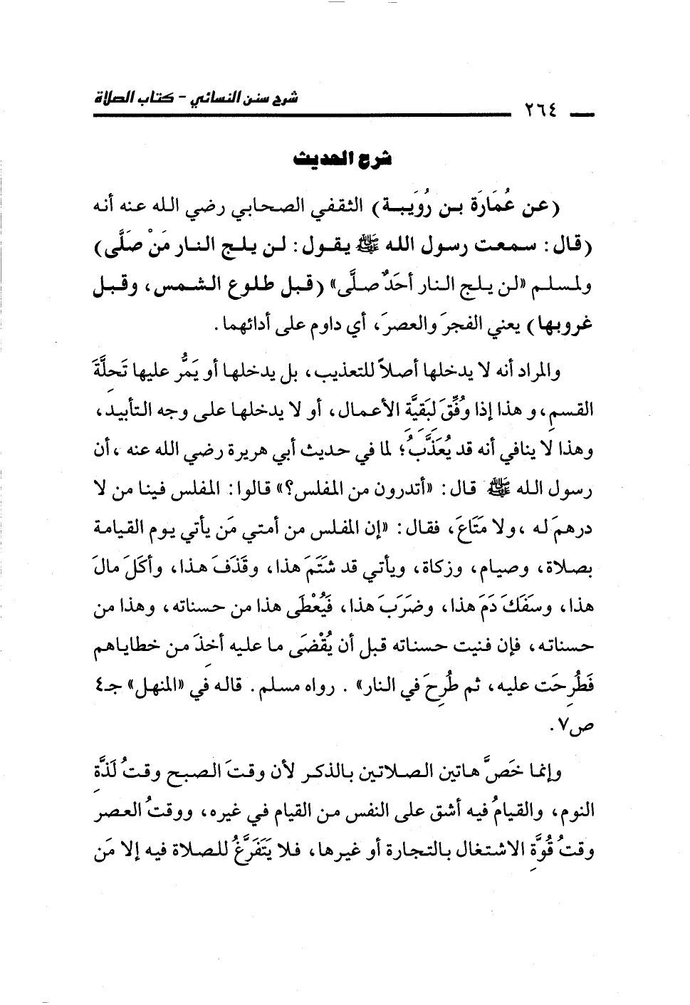 (عن عُمَارَة بن رُوَيبة) الثقفي الصحابي رضي الله عنه أنه (قال: سمعت رسول الله - صلى الله عليه وسلم - يقول: لن يلج النار مَنْ صَلَّى) ولمسلم "لن يلج النار أحَدٌ صلَّى" (قبل طلوع الشمس، وقبل غروبها) يعني الفجرَ والعصرَ، أي داوم على أدائهما.