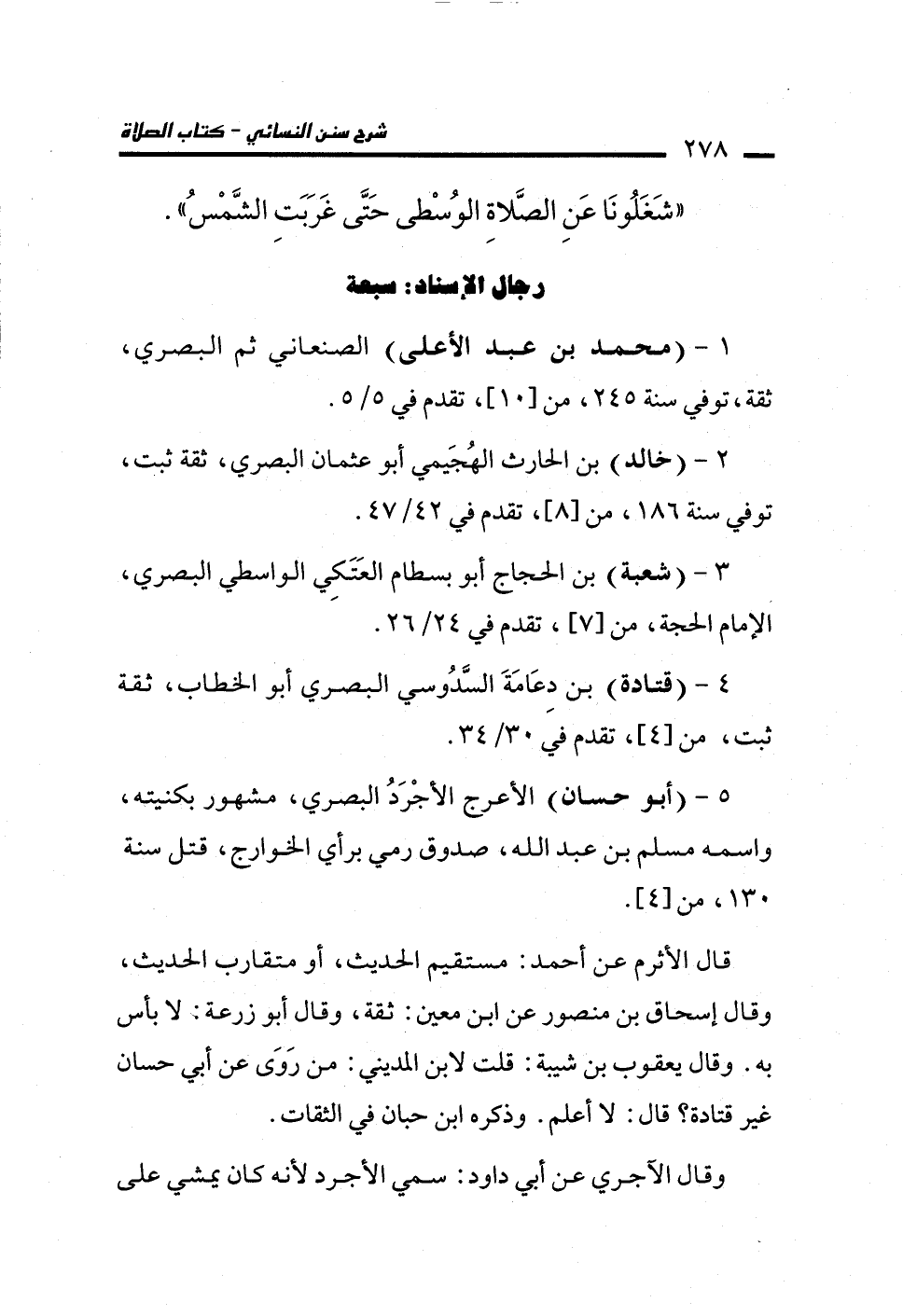"شَغَلُونَا عَنِ الصَّلاَةِ الْوُسْطَى حَتَّى غَرَبَتِ الشَّمْسُ".