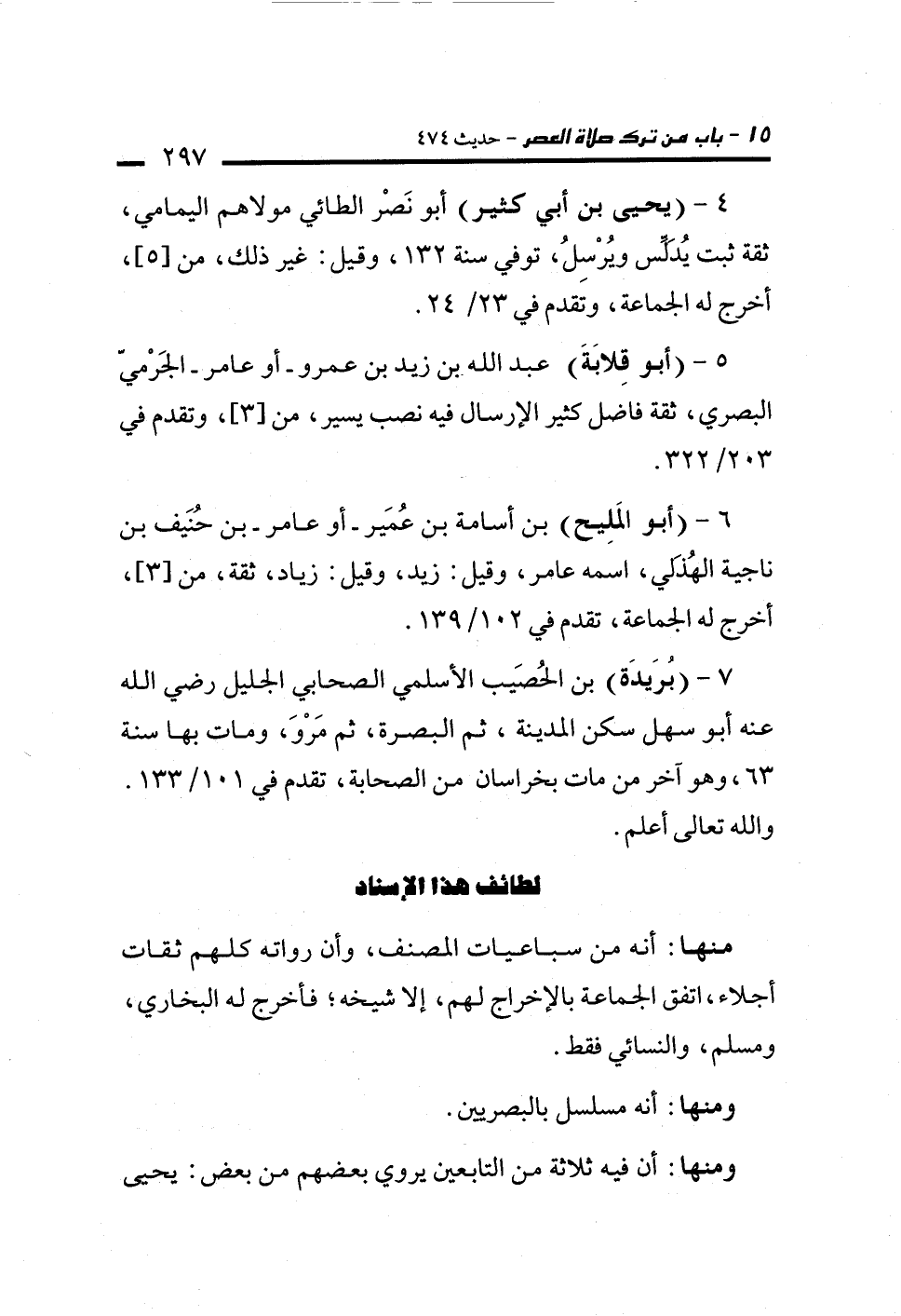 4 - (يحيى بن أبي كثير) أبو نَصْر الطائي مولاهم اليمامي، ثقة ثبت يُدَلِّس ويُرْسِلُ، توفي سنة 132، وقيل: غير ذلك، من [5]، أخرج له الجماعة، وتقدم في 23/ 24.