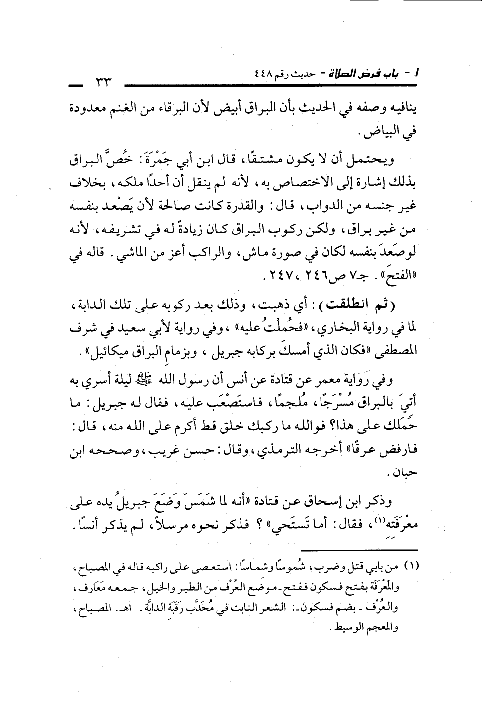 ويحتمل أن لا يكون مشتقًا، قال ابن أبي جَمْرَةَ: خُصَّ البراق بذلك إشارة إلى الاختصاص به، لأنه لم ينقل أن أحدًا ملكه، بخلاف غير جنسه من الدواب، قال: والقدرة كانت صالحة لأن يَصْعد بنفسه من غير براق، ولكن ركوب البراق كان زيادةً له في تشريفه، لأنه