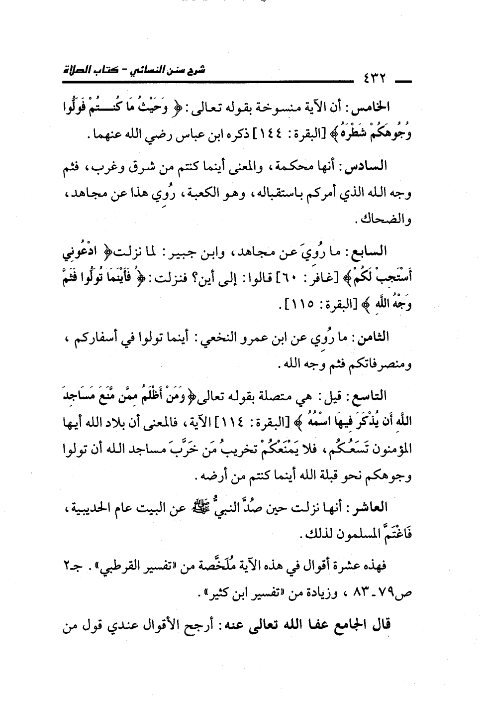 السابع: ما رُوِيَ عن مجاهد، وابن جبير: لما نزلت {ادْعُونِي أَسْتَجِبْ لَكُمْ} [غافر: 60] قالوا: إلى أين؟ فنزلت: {فَأَيْنَمَا تُوَلُّوا فَثَمَّ وَجْهُ اللَّهِ} [البقرة: 115].