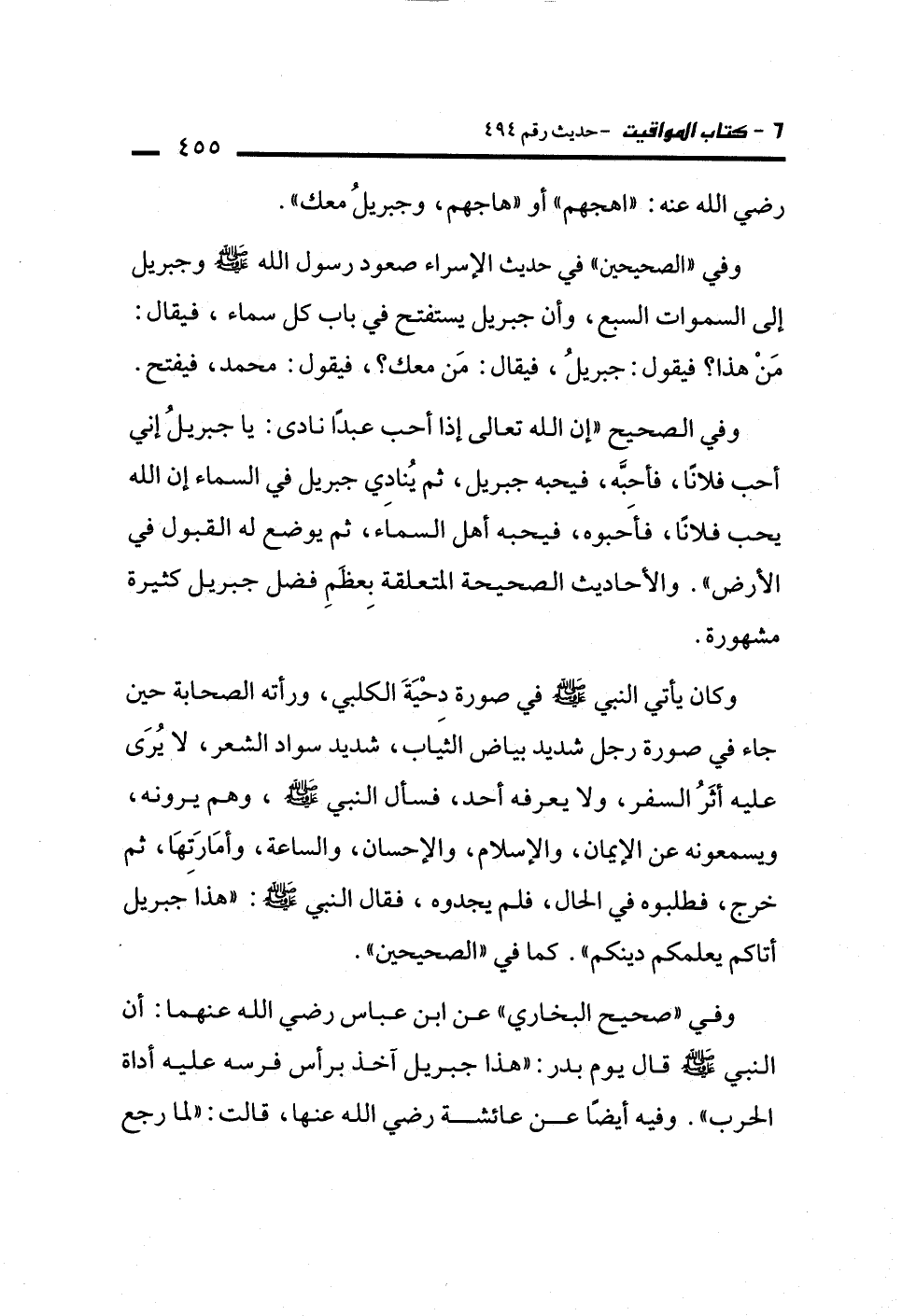 وفي "صحيح البخاري" عن ابن عباس رضي الله عنهما: أن النبي - صلى الله عليه وسلم - قال يوم بدر: "هذا جبريل آخذ برأس فرسه عليه أداة الحرب". وفيه أيضًا عن عائشة رضي الله عنها، قالت: "لما رجع