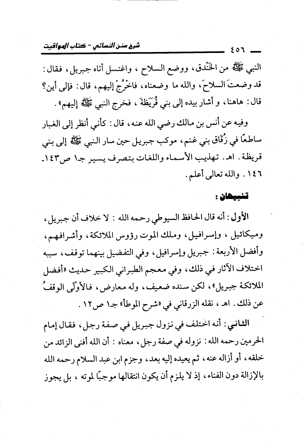 الأول: أنه قال الحافظ السيوطي رحمه الله: لا خلاف أن جبريل، وميكائيل، وإسرافيل، وملك الموت رؤوس الملائكة، وأشرافهم، وأفضل الأربعة: جبريل وإسرافيل، وفي التفضيل بينهما توقف، سببه اختلاف الآثار في ذلك، وفي معجم الطبراني الكبير حديث "أفضل الملائكة جبريل"، لكن سنده ضعيف، وله معارض، فالأوْلَى الوقفُ عن ذلك. اهـ، نقله الزرقاني في "شرح الموطأ" جـ 1 ص 12.