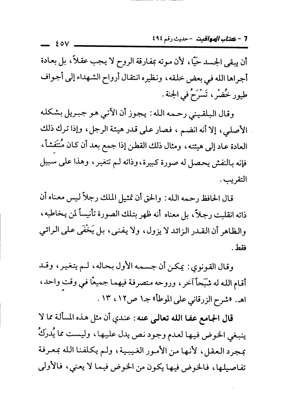 وقال القونوي: يمكن أن جسمه الأول بحاله، لم يتغير، وقد أقام الله له شَبَحًا آخر، وروحه متصرفة فيهما جميعًا في وقتٍ واحد، اهـ. "شرح الزرقاني على الموطأ" جـ 1 ص 12، 13.