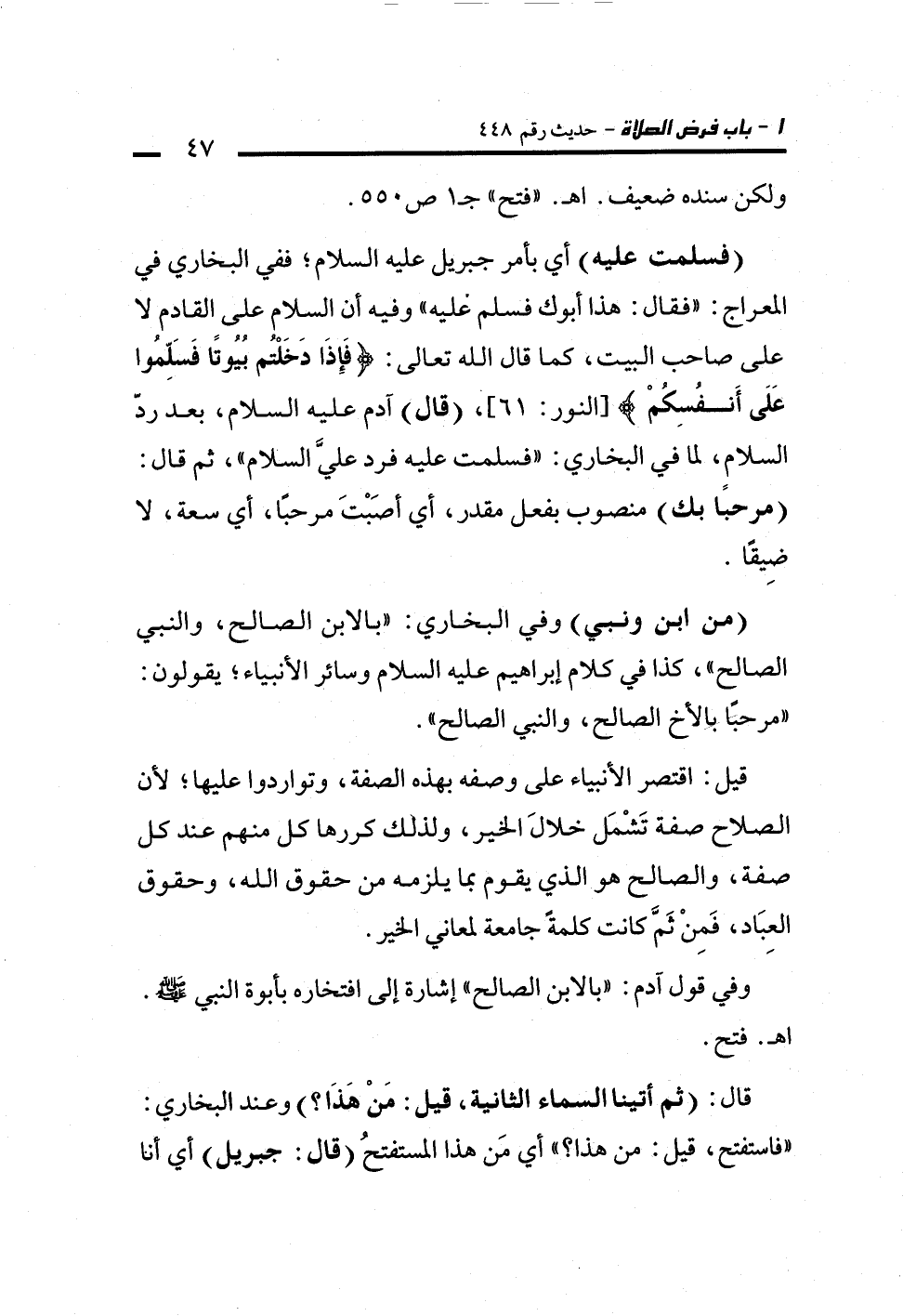 وفي قول آدم: "بالابن الصالح" إشارة إلى افتخاره بأبوة النبي - صلى الله عليه وسلم -.