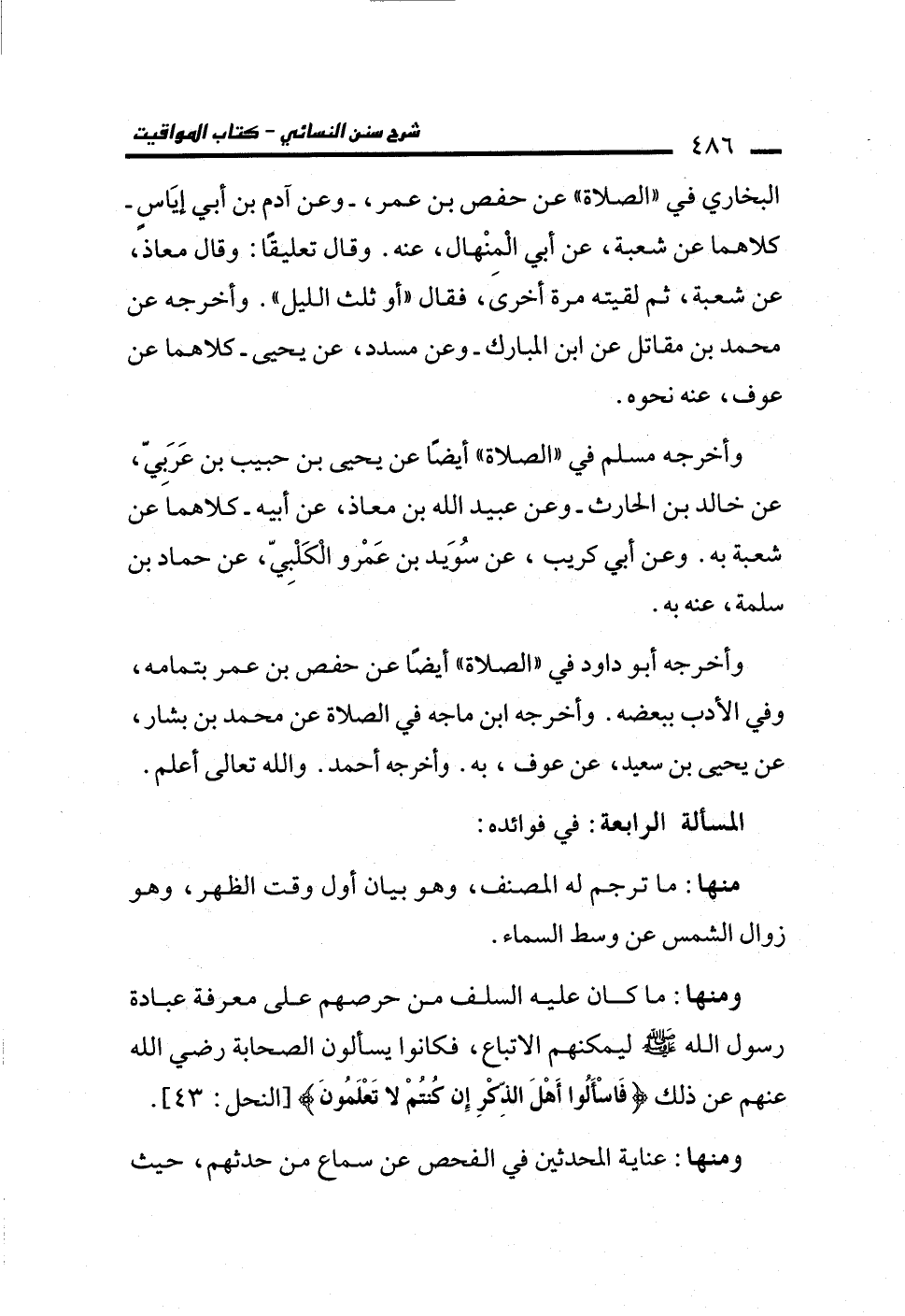 ومنها: ما كان عليه السلف من حرصهم على معرفة عبادة رسول الله - صلى الله عليه وسلم - ليمكنهم الاتباع، فكانوا يسألون الصحابة رضي الله عنهم عن ذلك {فَاسْأَلُوا أَهْلَ الذِّكْرِ إِنْ كُنْتُمْ لَا تَعْلَمُونَ} [النحل: 43].