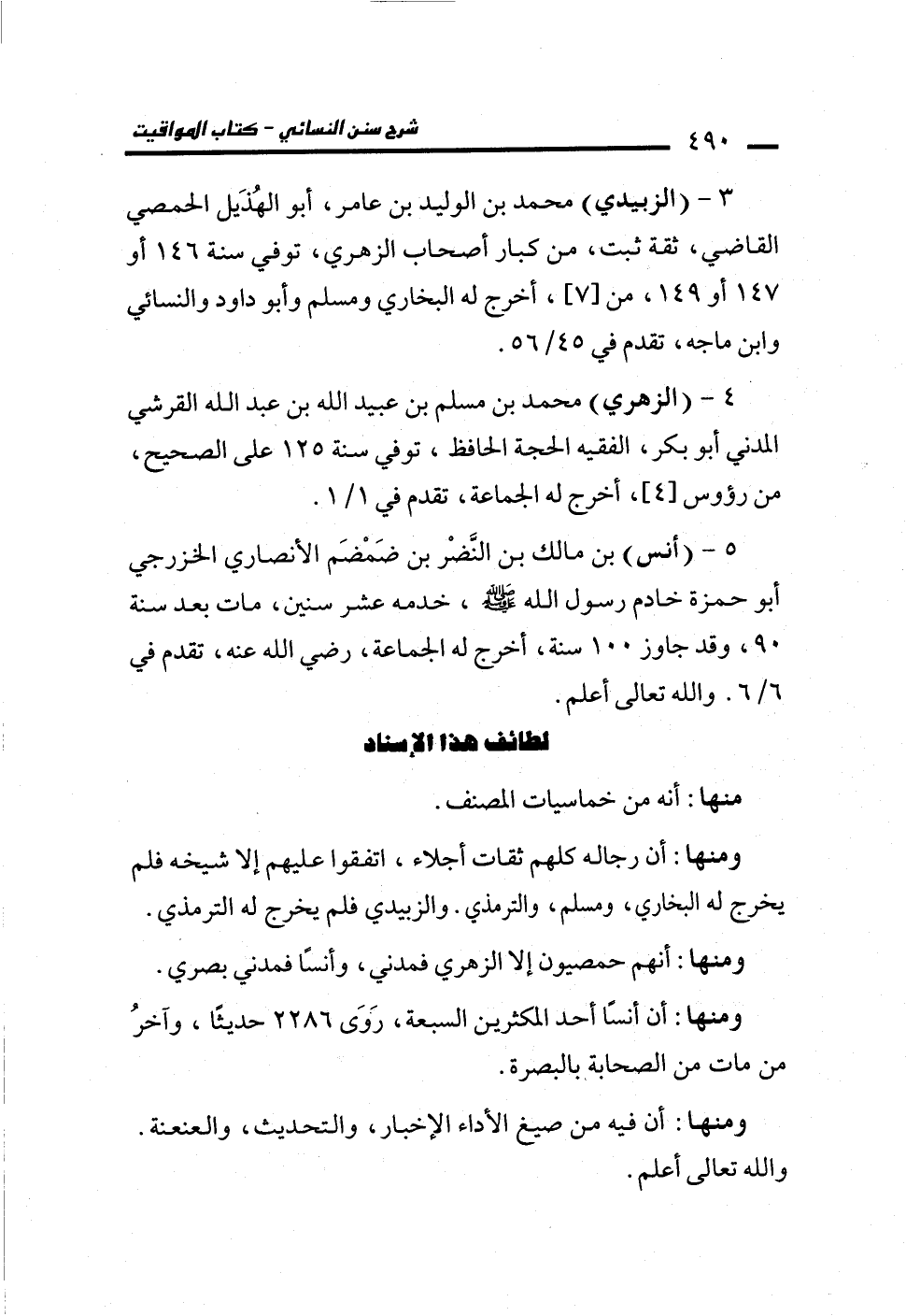ومنها: أن رجاله كلهم ثقات أجلاء، اتفقوا عليهم إلا شيخه فلم يخرج له البخاري، ومسلم، والترمذي. والزبيدي فلم يخرج له الترمذي.