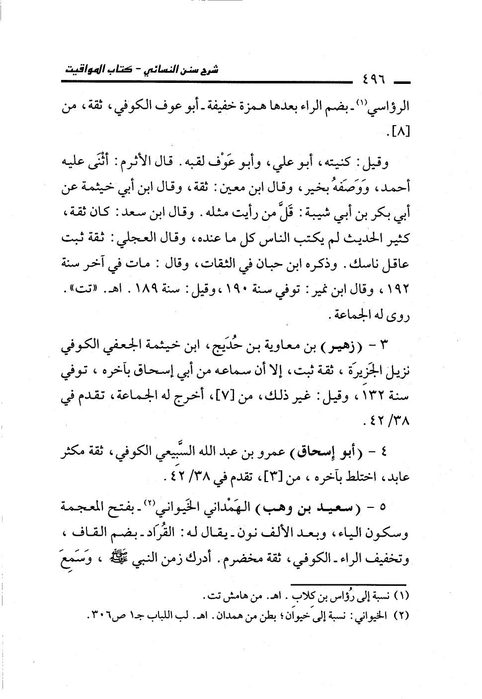 5 - (سعيد بن وهب) الهَمْداني الخَيواني (¬2) -بفتح المعجمة وسكون الياء، وبعد الألف نون- يقال له: القُرَاد -بضم القاف، وتخفيف الراء- الكوفي، ثقة مخضرم. أدرك زمن النبي - صلى الله عليه وسلم -، وَسَمِعَ