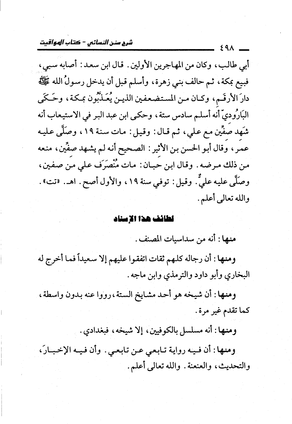 ومنها: أن رجاله كلهم ثقات اتفقوا عليهم إلا سعيدًا فما أخرج له البخاري وأبو داود والترمذي وابن ماجه.