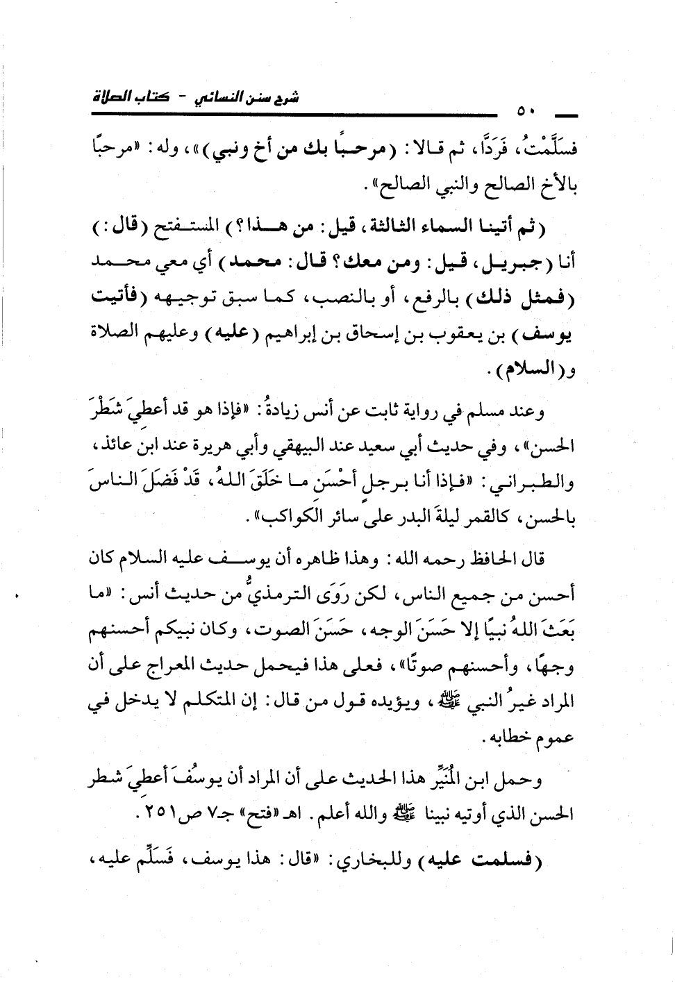 وحمل ابن المُنَيِّر هذا الحديث على أن المراد أن يوسُفَ أعطِيَ شطر الحسن الذي أوتيه نبينا - صلى الله عليه وسلم - والله أعلم. اهـ "فتح" جـ 7 ص 251.