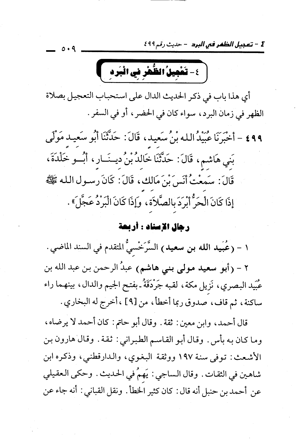 4 - تَعْجِيلُ الظُّهْرِ فِي الْبَردِ