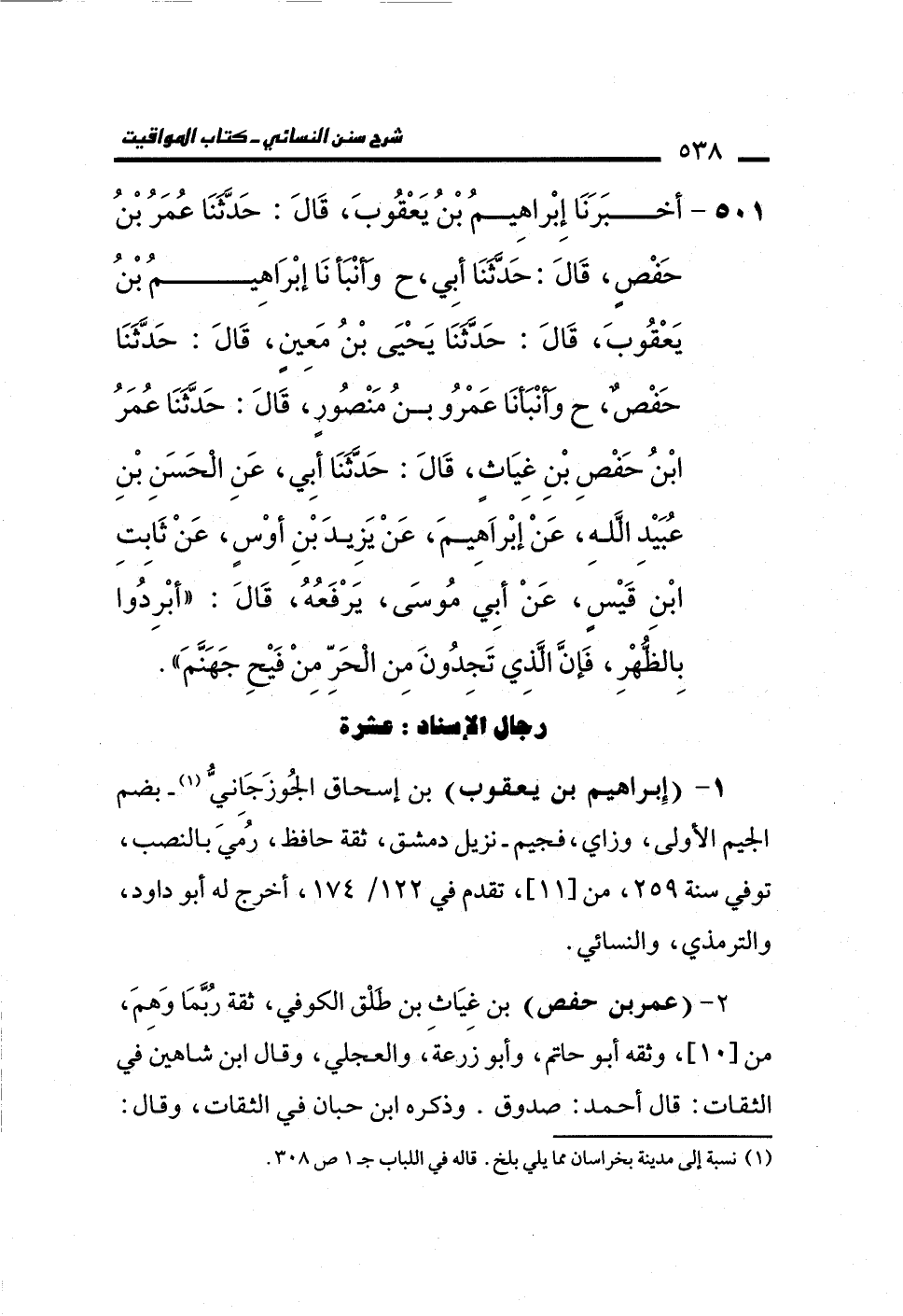 1 - (إِبراهيم بن يعقوب) بن إسحاق الجُوزَجَاِنيُّ (¬1) -بضم الجيم الأولى، وزاي، فجيم- نزيل دمشق، ثقة حافظ، رُميَ بالنصب، توفي سنة 259، من [11]، تقدم في 122/ 174، أخرج له أبو داود، والترمذي، والنسائي.