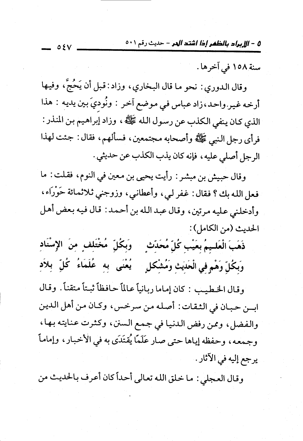 ذَهَبَ الْعَليِمُ بِعَيْبِ كلِّ مُحَدِّثٍ ... وَبِكُلِّ مُخْتَلِفٍ منَ الإسْنَادِ
