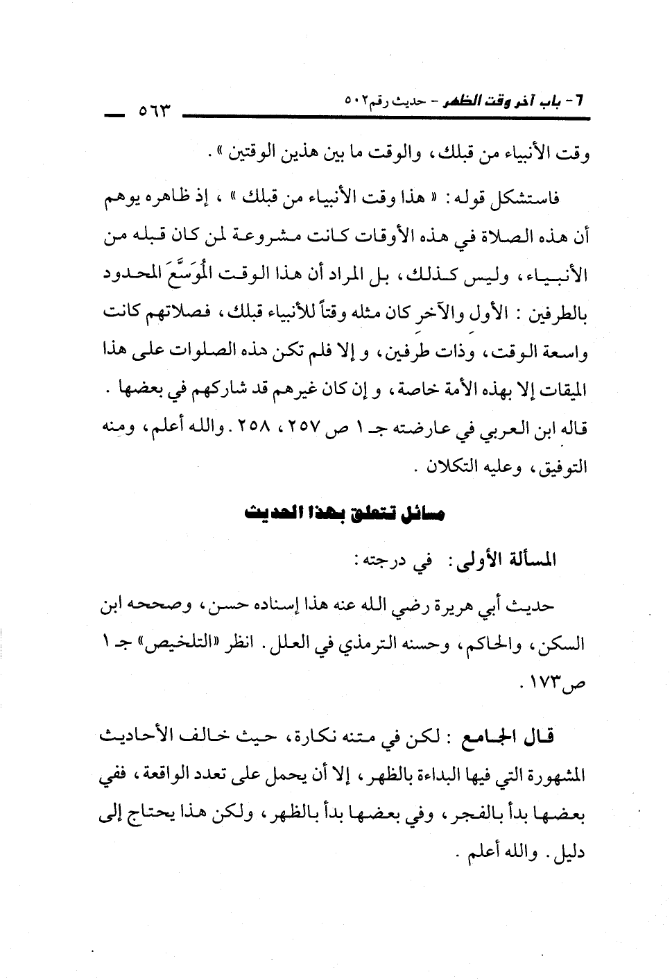 فاستشكل قوله: "هذا وقت الأنبياء من قبلك"، إذ ظاهره يوهم أن هذه الصلاة في هذه الأوقات كانت مشروعة لمن كان قبله من الأنبياء، وليس كذلك، بل المراد أن هذا الوقت المُوَسَّعَ المحدود بالطرفين: الأولِ والآخرِ كان مثله وقتًا للأنبياء قبلك، فصلاتهم كانت واسعة الوقت، وذات طرفين، وإلا فلم تكن هذه الصلوات على هذا الميقات إلا بهذه الأمة خاصة، وإن كان غيرهم قد شاركهم في بعضها. قاله ابن العربي في عارضته جـ 1 ص 257، 258. والله أعلم، ومنه التوفيق، وعليه التكلان.
