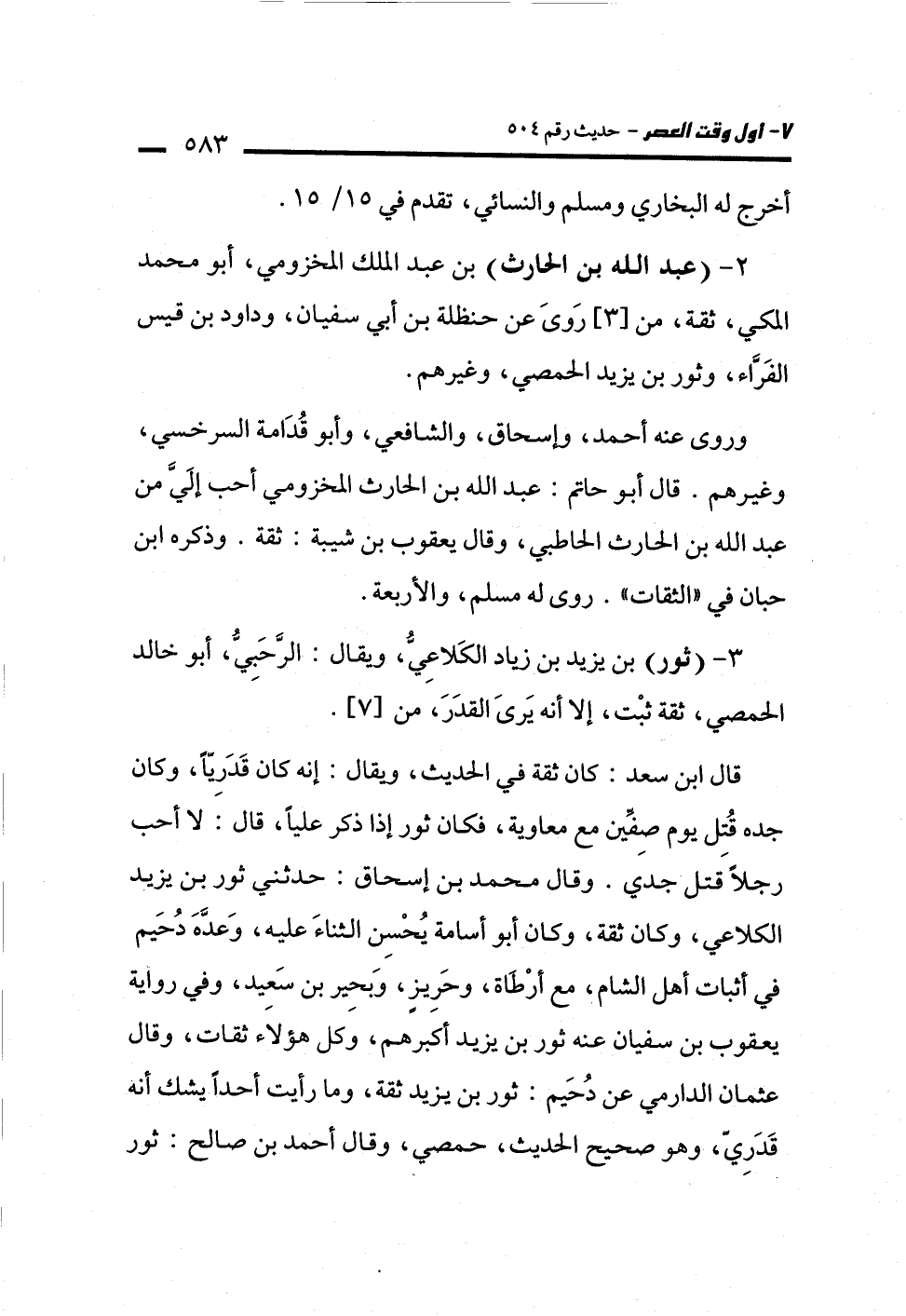 3 - (ثور) بن يزيد بن زياد الكَلاعِيُّ، ويقال: الرَّحَبِيُّ، أبو خالد الحمصي، ثقة ثبْت، إلا أنه يَرىَ القدَرَ، من [7].