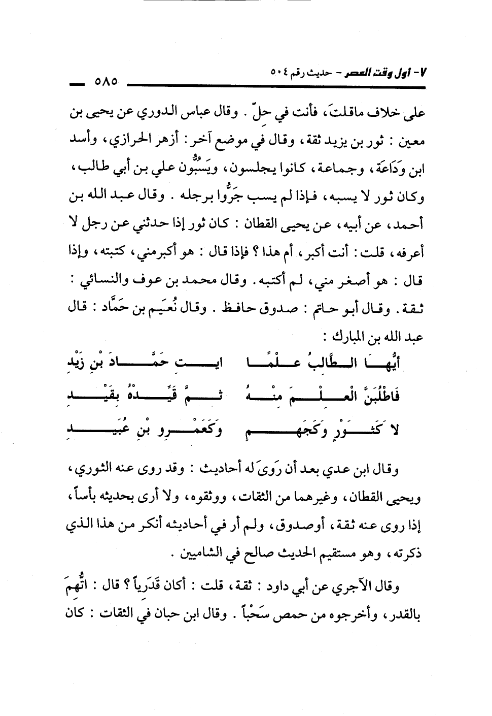 أيّهَا الطَّالِبُ علْمًا ... ايتِ حَمَّادَ بْنِ زَيْدِ