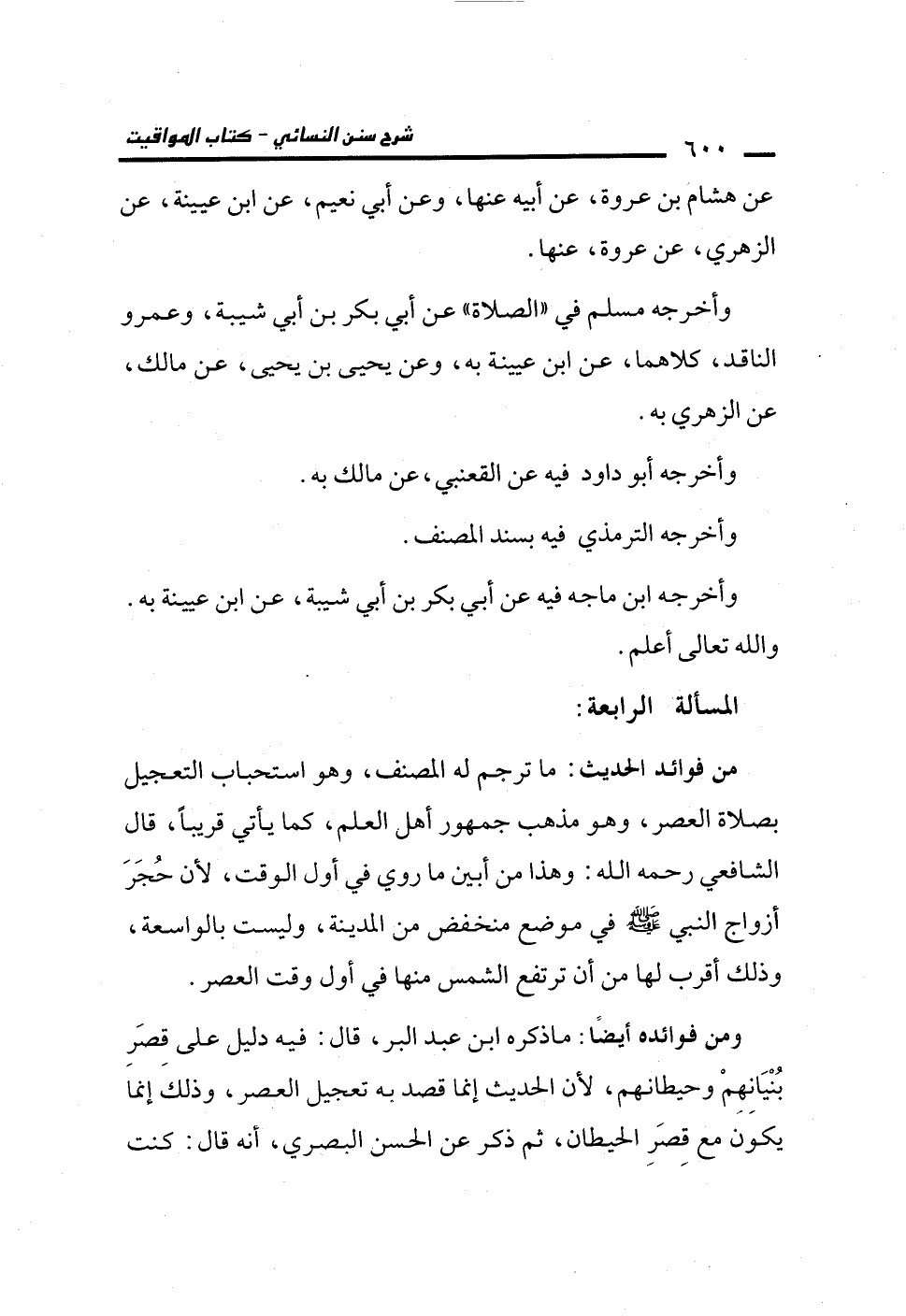 ومن فوائده أيضًا: ما ذكره ابن عبد البر، قال: فيه دليل على قصَرِ بُنْيَانِهِمْ وحيطانهم، لأن الحديث إنما قصد به تعجيل العصر، وذلكَ إنما يكوَن مع قِصَرِ الحيطان، ثم ذكر عن الحسن البصري، أنه قال: كنت