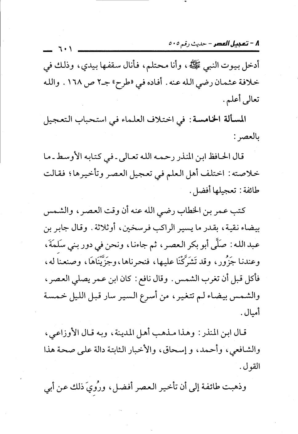 المسألة الخامسة: في اختلاف العلماء في استحباب التعجيل بالعصر: