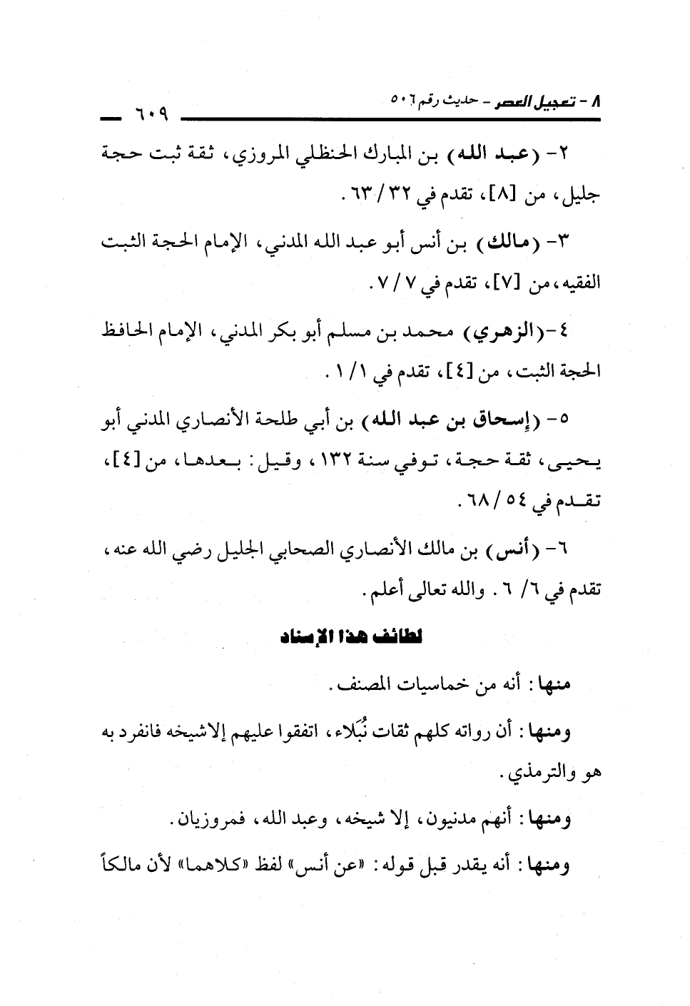 3 - (مالك) بن أنس أبو عبد الله المدني، الإمام الحجة الثبت الفقيه، من [7]، تقدم في 7/ 7.