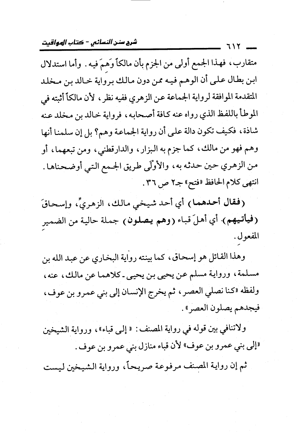 متقارب، فهذا الجمع أولى من الجزم بأن مالكًا وَهِمَ فيه. وأما استدلال ابن بطال على أن الوهم فيه ممن دون مالك بروَاية خالد بن مخلد المتقدمة الموافقة لرواية الجماعة عن الزهري ففيه نظر، لأن مالكًا أثبته في الموطأ باللفظ الذي رواه عنه كافة أصحابه، فرواية خالد بن مخلد عنه شاذة، فكيف تكون دالة على أن رواية الجماعة وهم؟ بل إن سلمنا أنها وهم فهو من مالك، كما جزم به البزار، والدارقطني، ومن تبعهما، أو من الزهري حين حدثه به، والأوْلَى طريق الجمع التي أوضحناها. انتهى كلام الحافظ "فتح" جـ 2 ص 36.