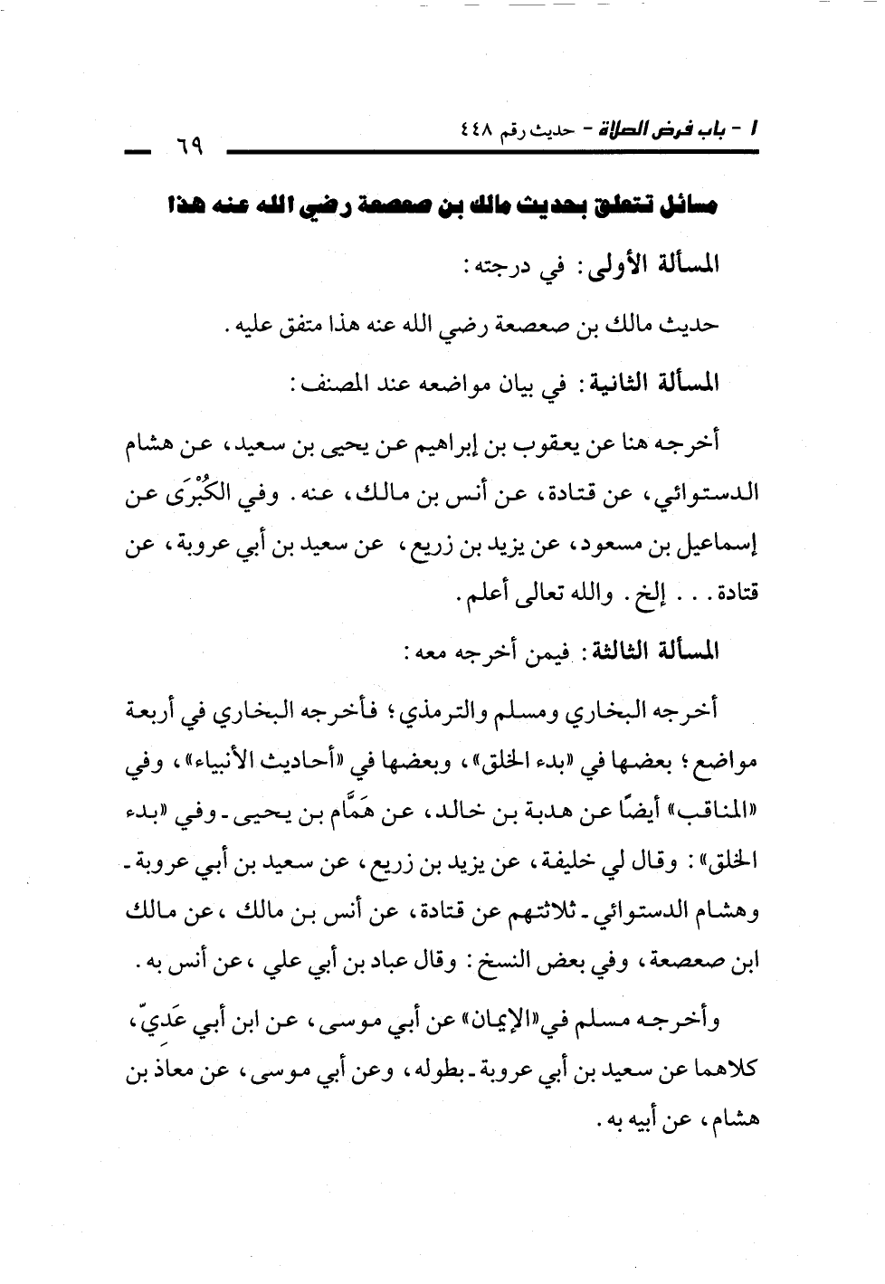 مسائل تتعلق بحديث مالك بن صعصعة رضي الله عنه هذا