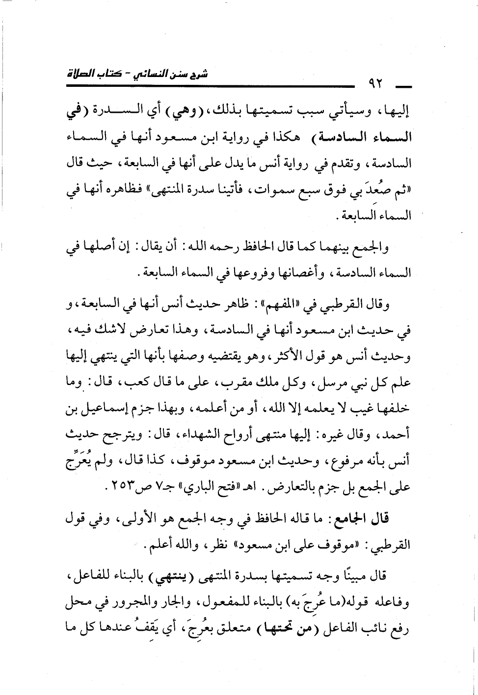 وقال القرطبي في "المفهم": ظاهر حديث أنس أنها في السابعة، وفي حديث ابن مسعود أنها في السادسة، وهذا تعارض لا شك فيه، وحديث أنس هو قول الأكثر، وهو يقتضيه وصفها بأنها التي ينتهي إليها علم كل نبي مرسل، وكل ملك مقرب، على ما قال كعب، قال: وما خلفها غيب لا يعلمه إلا الله، أو من أعلمه، وبهذا جزم إسماعيل بن أحمد، وقال غيره: إليها منتهى أرواح الشهداء، قال: ويترجح حديث أنس بأنه مرفوع، وحديث ابن مسعود موقوف، كذا قال، ولم يُعَرِّج على الجمع بل جزم بالتعارض. اهـ "فتح الباري" جـ 7 ص 253.