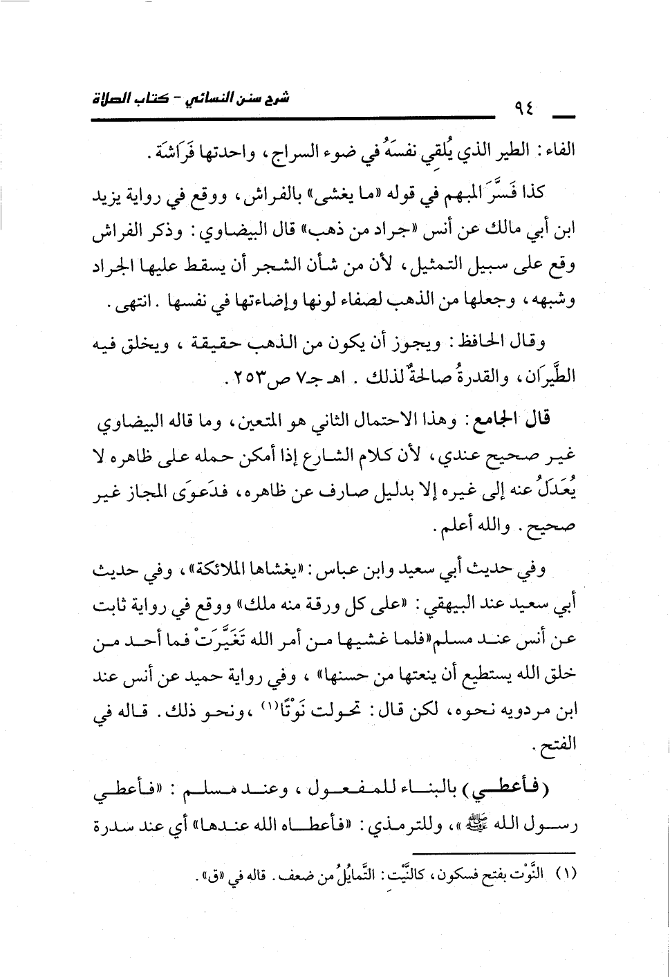 قال الجامع: وهذا الاحتمال الثاني هو المتعين، وما قاله البيضاوي غير صحيح عندي، لأن كلام الشارع إذا أمكن حمله على ظاهره لا يُعَدَلُ عنه إلى غيره إلا بدليل صارف عن ظاهره، فدَعوَى المجاز غير صحيح. والله أعلم.