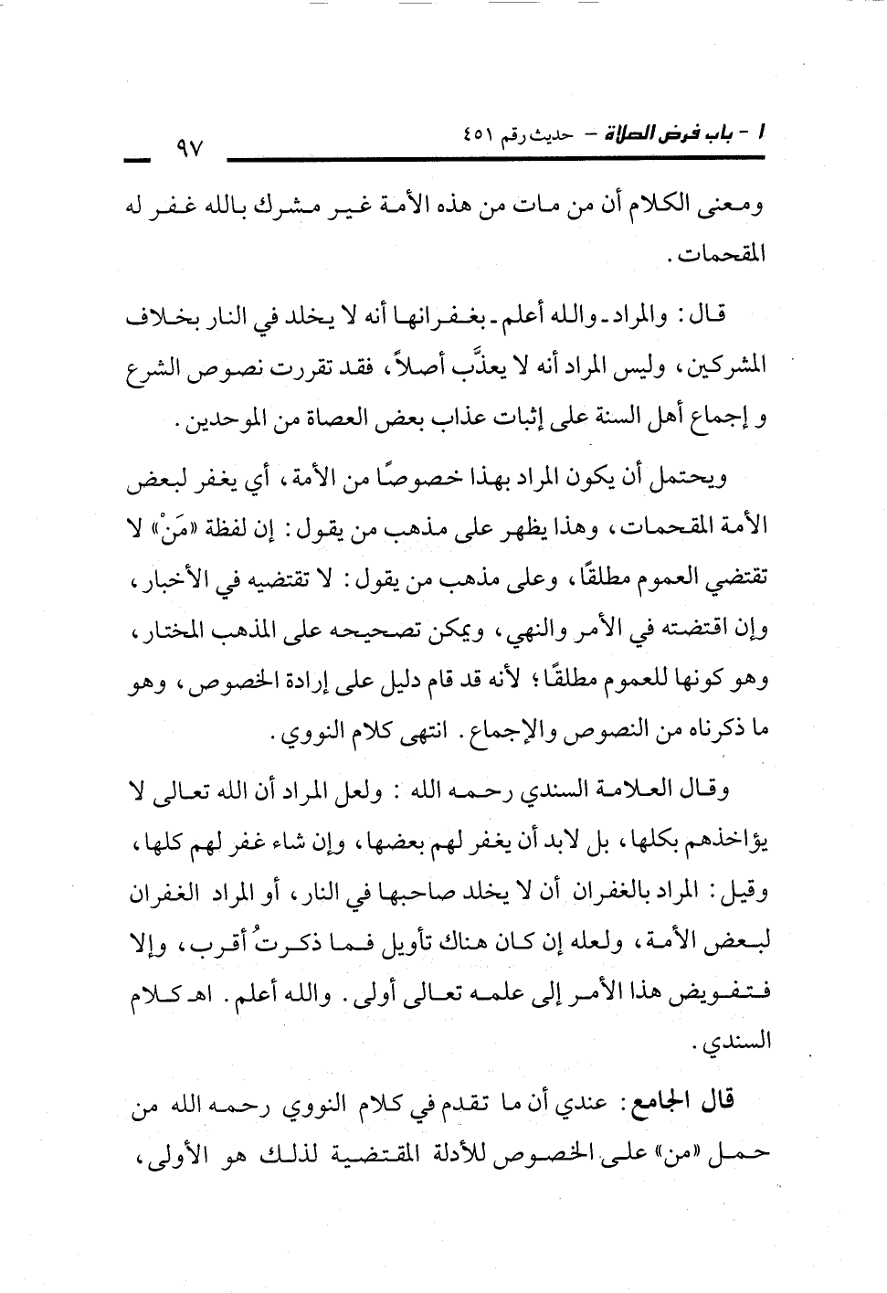 قال الجامع: عندي أن ما تقدم في كلام النووي رحمه الله من حمل "من" على الخصوص للأدلة المقتضية لذلك هو الأولى،