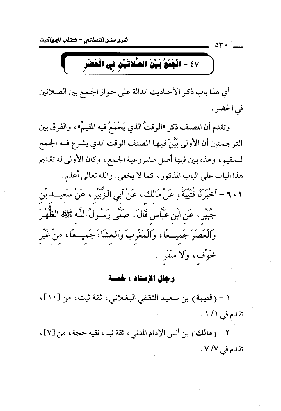 47 - الْجَمْعُ بَيْنَ الصَّلاتَيْنِ فِي الْحَضَرِ