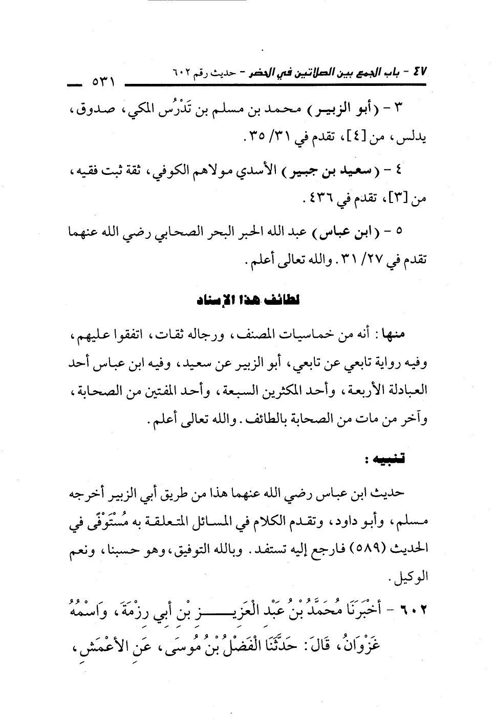 حديث ابن عباس رضي الله عنهما هذا من طريق أبي الزبير أخرجه مسلم، وأبو داود، وتقدم الكلام في المسائل المتعلقة به مُسْتَوْفًى في الحديث (589) فارجع إليه تستفد. وبالله التوفيق، وهو حسبنا، ونعم الوكيل.