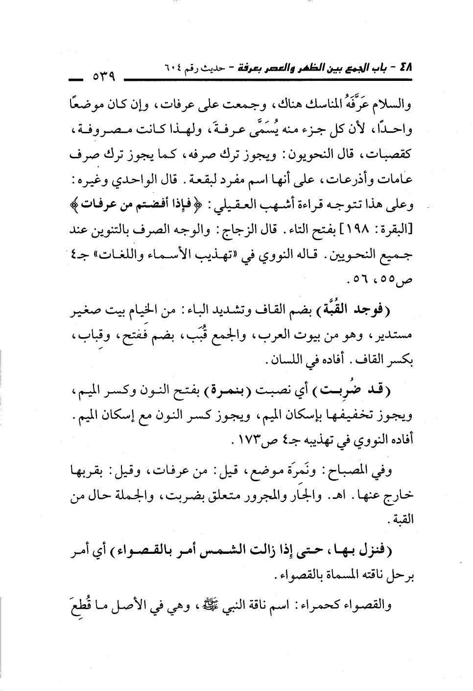 (قد ضُرِبت) أي نصبت (بنمرة) بفتح النون وكسر الميم، ويجوز تخفيفها بإسكان الميم، ويجوز كسر النون مع إسكان الميم. أفاده النووي في تهذيبه جـ 4 ص 173.