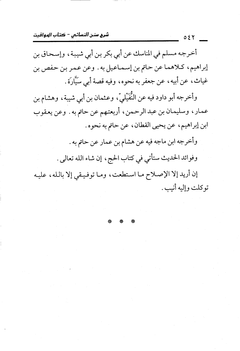 أخرجه مسلم في المناسك عن أبي بكر بن أبي شيبة، وإسحاق بن إبراهيم، كلاهما عن حاتم بن إسماعيل به. وعن عمر بن حفص بن غياث، عن أبيه، عن جعفر به نحوه، وفيه قصة أبي سَيَّارَة.