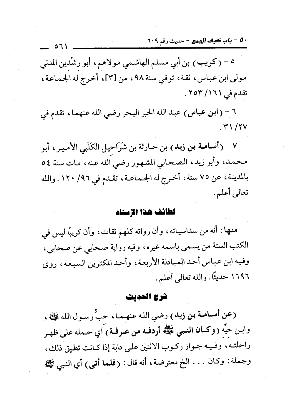7 - (أسامة بن زيد) بن حارثة بن شَرَاحِيل الكَلْبي الأمير، أبو محمد، وأبو زيد، الصحابي المشهور رضي الله عنه، مات سنة 54 بالمدينة، عن 75 سنة، أخرج له الجماعة، تقدم في 96/ 120. والله تعالى أعلم.
