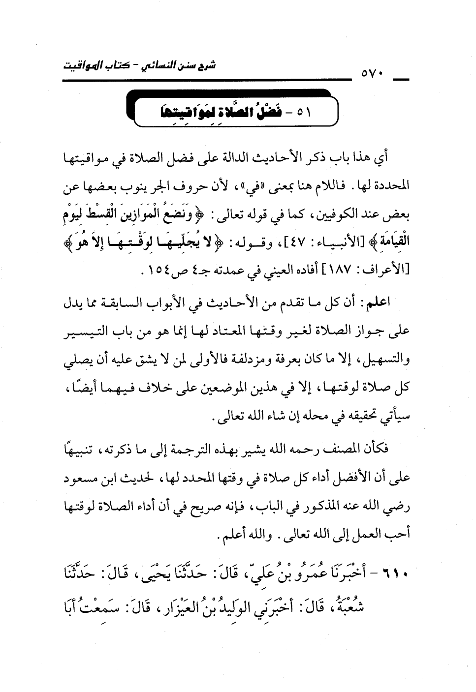 51 - فَضْلُ الصَّلاةِ لِمَوَاقِيتِهَا