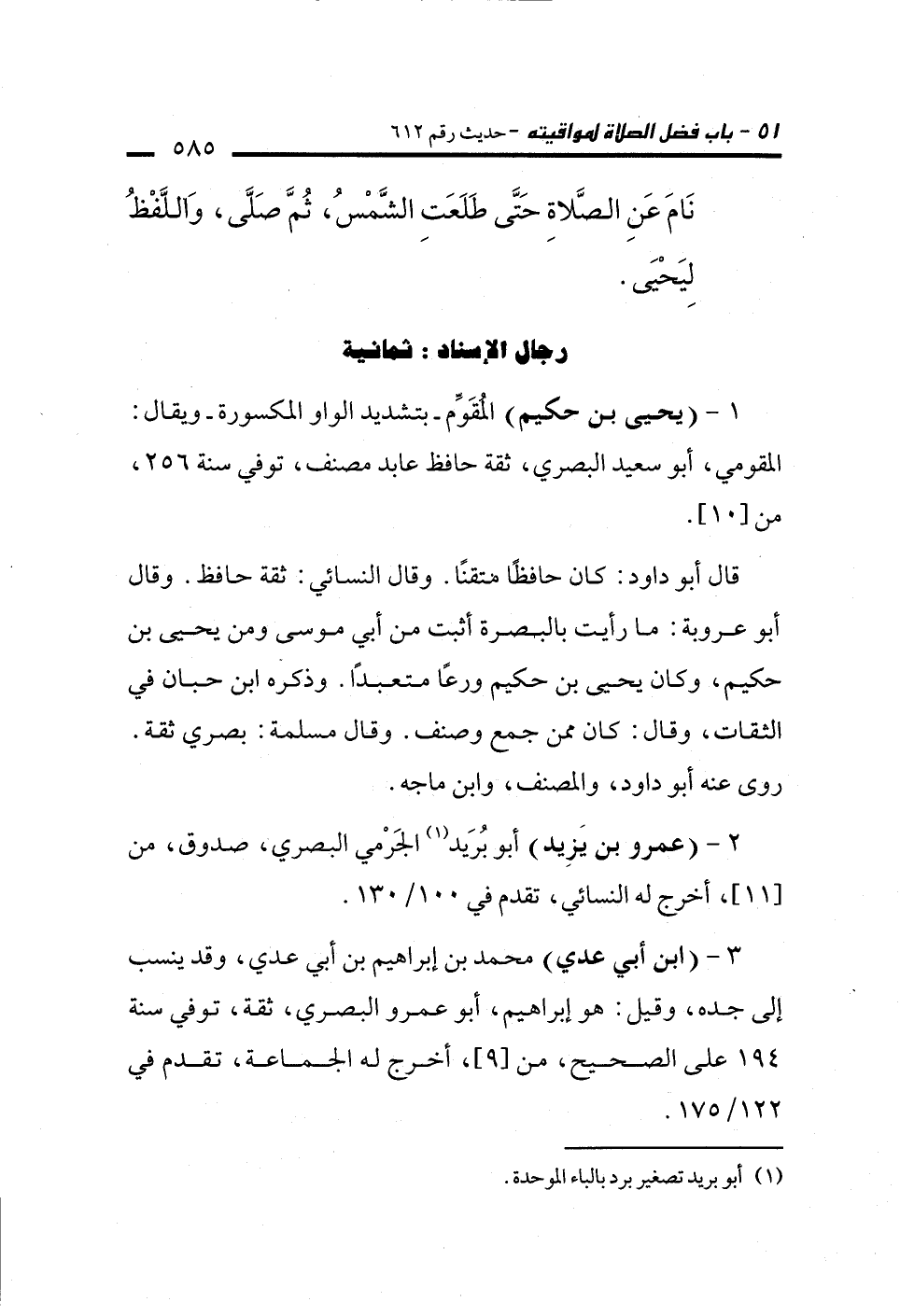 1 - (يحيى بن حكيم) المُقَوِّم -بتشديد الواو المكسورة- ويقال: المقومي، أبو سعيد البصري، ثقة حافظ عابد مصنف، توفي سنة 256، من [10].